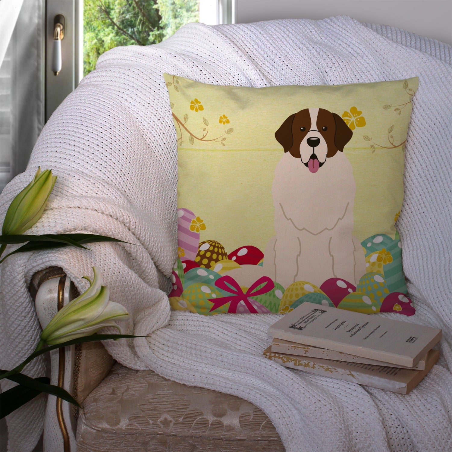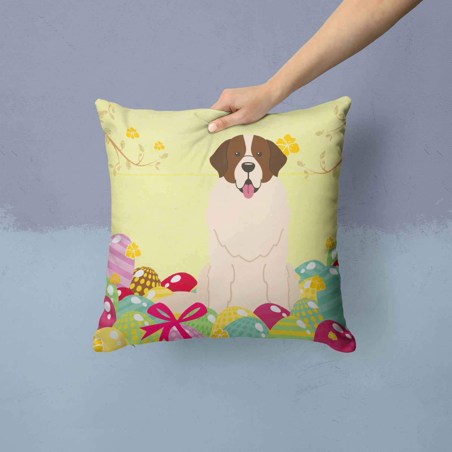 Decorate your space with our Easter Moscow Watchdog artwork on a Pillow. Add a touch of vibrancy and comfort to your outdoor seating with Caroline's Treasures Fabric Decorative Pillow. Measuring approximately 14 inches by 14 inches, this outdoor pillow is crafted to elevate the appeal of your patio furniture, infusing it with vivid color and artistic flair. The pillow includes a 100% Polyester Fabric sham filled with a quality pillow form to provide superior comfort. Innovatively made from our brand new material, specifically woven for its water resistance, this pillow is designed for durability. The soft canvas fabric offers versatility in use, fit for your indoor couch or your outdoor patio, porch, or veranda. The fabric is dyed with colorfast dyes built for resilience against weather conditions, ensuring the pillow retains its beauty over time. Constructed by sewing three fabric pieces to create a sham, the polyester insert is then nestled inside to form the pillow, resulting in an overstuffed pillow that maintains its shape. Both the sham and the pillow insert are proudly made in the United States. As the pillows are handcrafted, there may be minor variations in size, further enhancing their unique charm. Experience comfort in style with Caroline's Treasures Fabric Decorative Pillow.