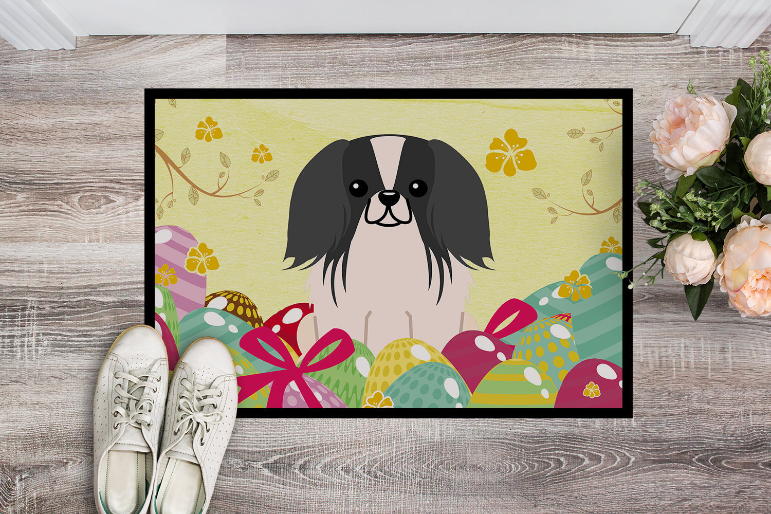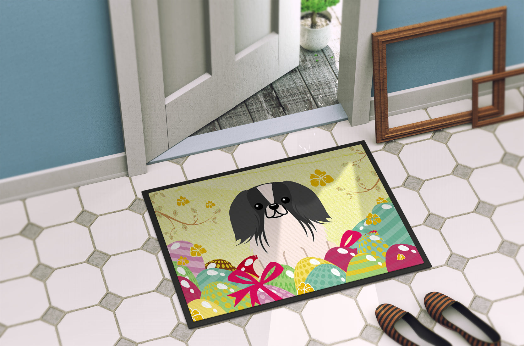 Decorate your space with our Easter Pekingese artwork on a Doormat. Welcome your guests in style with our Artwork Door Mat, designed to withstand almost any weather condition. This mat, measuring approximately 24 by 36 inches, is held together by durable black binding tape. Its top layer, composed of polyester felt, is dyed with the eye-catching image you see on the mat. A few layers below provide the mat with stability, while its rubber bottom is stamped to help prevent slipping and ensures safety. Our mat works wonderfully as both an indoor or outdoor door mat. For cleaning, simply hose it off with water or use a power washer - no need for any cleaner that produces suds. Avoid scrubbing with a brush, instead, opt for the vacuum on floor setting. Designed manufactured and printed in the USA, this mat is a perfect addition to your porch, outdoor kitchen, entryway, or any indoor space. Its unique design makes it a charming decorative rug that greets your guests and adds a stylish touch to your home decor.
