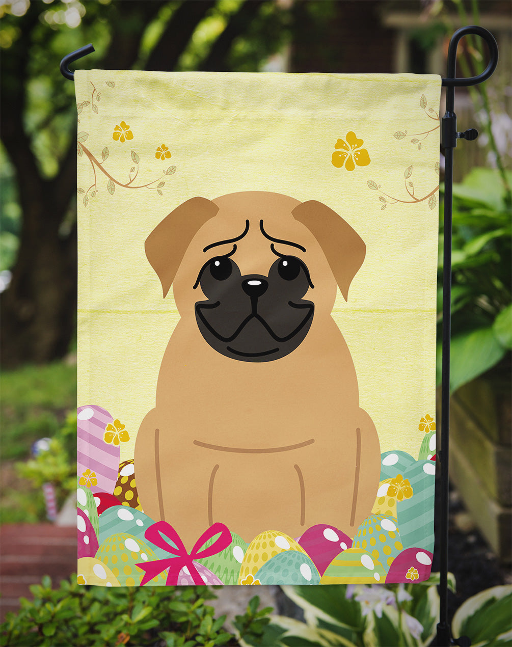 Decorate your space with our Easter Pug artwork on a Garden Flag. Enhance the beauty of your garden, patio, or yard with Caroline's Treasures Decorative Garden Flag, proudly made in the USA. Crafted from two pieces of thick, double-sided polyester fabric, this 2-ply garden flag is designed to withstand various weather conditions, making it water-resistant and weatherproof. Featuring correctly readable words on both sides, this garden flag offers a delightful visual experience from any angle. With its heavier weight, it stands out among other garden flags, ensuring stability and durability even in wind, rain, and snow. Measuring approximately 11 1/4 inches by 15 1/2 inches, this flag allows you to personalize your outdoor decor. It comes with a 1 1/2-inch sleeve sewn in, allowing easy attachment to any standard garden flag stand or garden size porch hanger (sold separately). Make a statement in your outdoor space with Caroline's Treasures Decorative Garden Flag, a vibrant and high-quality flag that adds color and personality to your surroundings. Proudly made in the USA, it's a symbol of quality craftsmanship and attention to detail.
