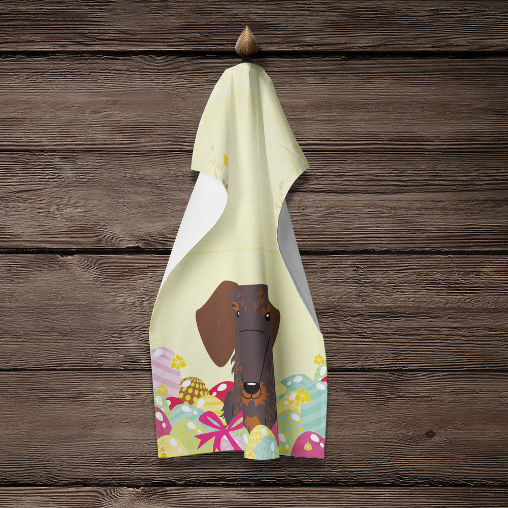 Decorate your space with our Easter Dachshund artwork on a Kitchen Towel. Experience the perfect blend of aesthetic appeal and functional excellence with our Plush Velour Kitchen Towels. These are not your ordinary decorative kitchen towels that gather dust. Instead, they are designed to be as practical as they are stylish. The front layer of our towel is constructed from a minky plush polyester, known for its durability and color retention. Unlike conventional kitchen towels, the artwork on our towels is dyed directly into the fabric, ensuring vibrant colors that last. Polish your glassware to a brilliant sparkle using the plush front side of the towel. Flip to the back, crafted from 100% cotton terry loop, to exploit its exceptional absorbency for drying dishes or wiping down counters. Our kitchen towels redefine the concept of functional art, offering lasting quality that maintains the towel's shape over time. Measuring 15 inches by 25 inches and weighing 2.3 lbs per dozen, these towels deliver an overwhelming sensory experience with their soft, plush, and smooth texture. The edges are meticulously finished with binding, enhancing their durability and visual appeal. For your convenience, these towels are machine washable and can be dried on low heat. After the first wash, the top fabric becomes even softer and fluffier, eliminating the need for ironing. Treat your kitchen to the luxury and functionality it deserves with our plush velour kitchen towels.