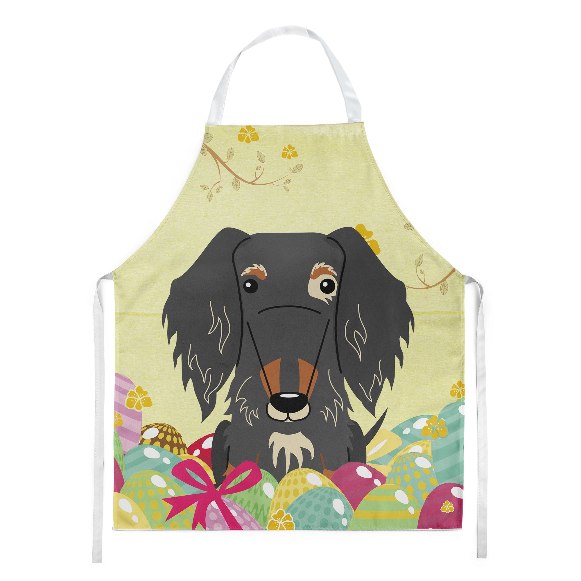 Decorate your space with our Easter Dachshund artwork on a Apron. Elevate your cooking, baking, and grilling experiences with our versatile Kitchen or BBQ Apron. This Bib Style apron isn't just limited to culinary activities - it also serves as an excellent baking apron, artist apron, server apron, gardening apron, or even a dog grooming apron. The apron showcases vibrant full-color artwork contributed by one of our talented artists, bringing a dash of style to your daily tasks. With dimensions of approximately 27"W x 30"H, it provides ample coverage to protect your clothing from spills and splashes. Our apron is meticulously crafted from 100% Ultra Spun Polyester, known for its durability and lightweight nature. The apron comes with white tie straps, ensuring a comfortable and adjustable fit for all. It's a perfect choice for kitchen apron enthusiasts, whether you are a woman or a man. Designed for easy maintenance, this apron is fully machine washable. The quick-drying polyester material actively reduces staining, keeping your apron looking fresh and new for longer. Our beautifully designed apron isn't just a functional kitchen accessory - it's a fashion statement in the culinary world!