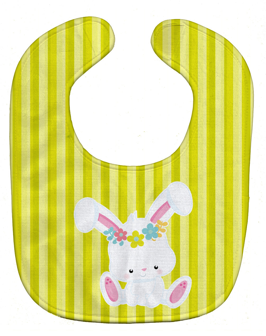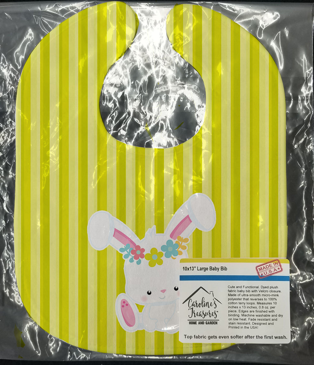 Decorate your space with our Easter Rabbit artwork on a Baby Bib. Cute and Functional. Dyed plush fabric baby bib with Velcro closure. Made of ultra-smooth micro-mink polyester that reverses to 100% cotton terry loops. Measures 10 inches x 13 inches, 0.8 oz. per piece. Edges are finished with binding. Machine washable and dry on low heat. Fade resistant and stain resistant. Top fabric gets even softer after the first wash.