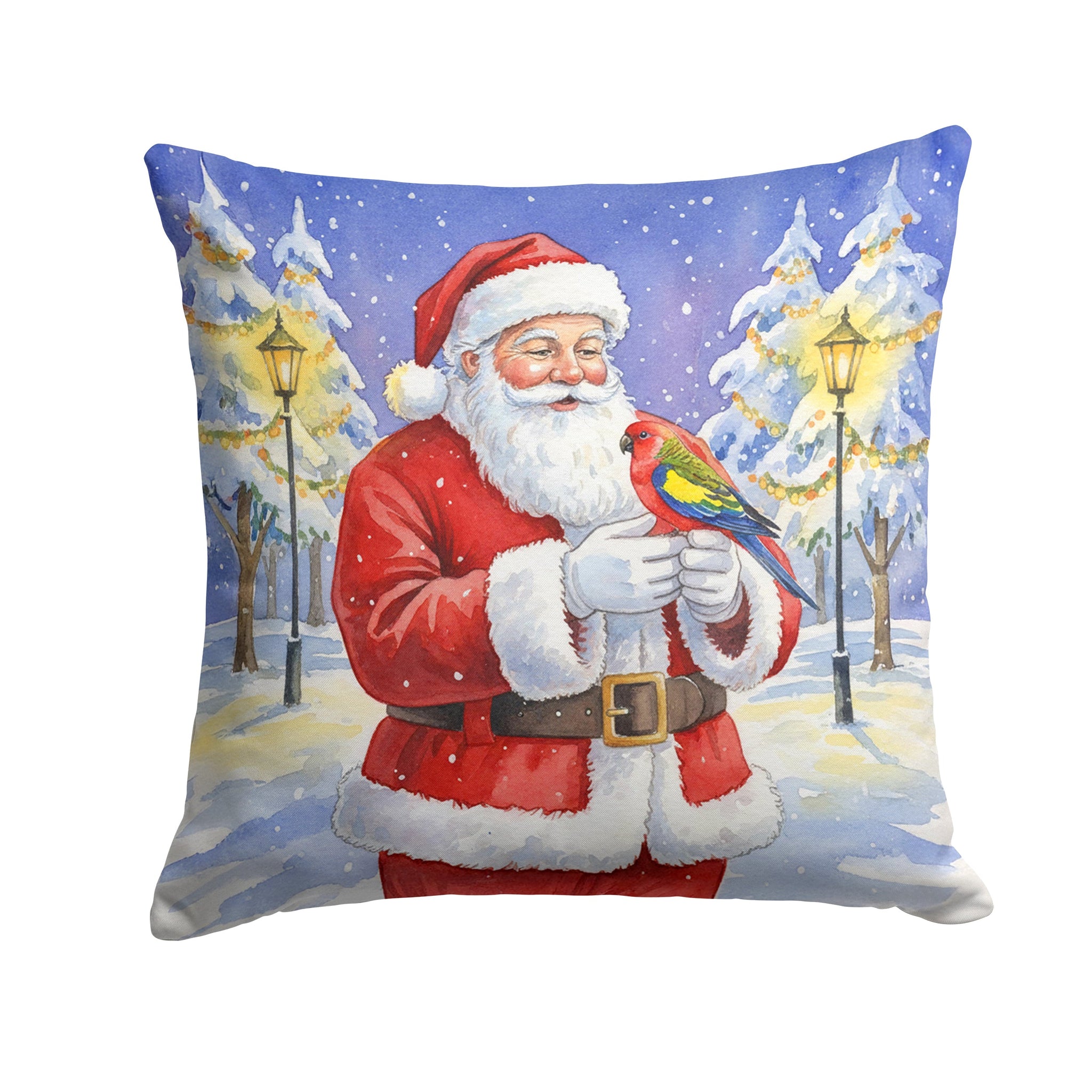 Throw Pillow featuring breed specific Eastern Rosella artwork. Celebrate Christmas with this Christmas Pillow. Add a touch of vibrancy and comfort to your outdoor seating with Caroline's Treasures Fabric Decorative Pillow. Measuring approximately 14 inches by 14 inches, this outdoor pillow is crafted to elevate the appeal of your patio furniture, infusing it with vivid color and artistic flair. The pillow includes a 100% Polyester Fabric sham filled with a quality pillow form to provide superior comfort. Innovatively made from our brand new material, specifically woven for its water resistance, this pillow is designed for durability. The soft canvas fabric offers versatility in use, fit for your indoor couch or your outdoor patio, porch, or veranda. The fabric is dyed with colorfast dyes built for resilience against weather conditions, ensuring the pillow retains its beauty over time. Constructed by sewing three fabric pieces to create a sham, the polyester insert is then nestled inside to form the pillow, resulting in an overstuffed pillow that maintains its shape. Both the sham and the pillow insert are proudly made in the United States. As the pillows are handcrafted, there may be minor variations in size, further enhancing their unique charm. Experience comfort in style with Caroline's Treasures Fabric Decorative Pillow.