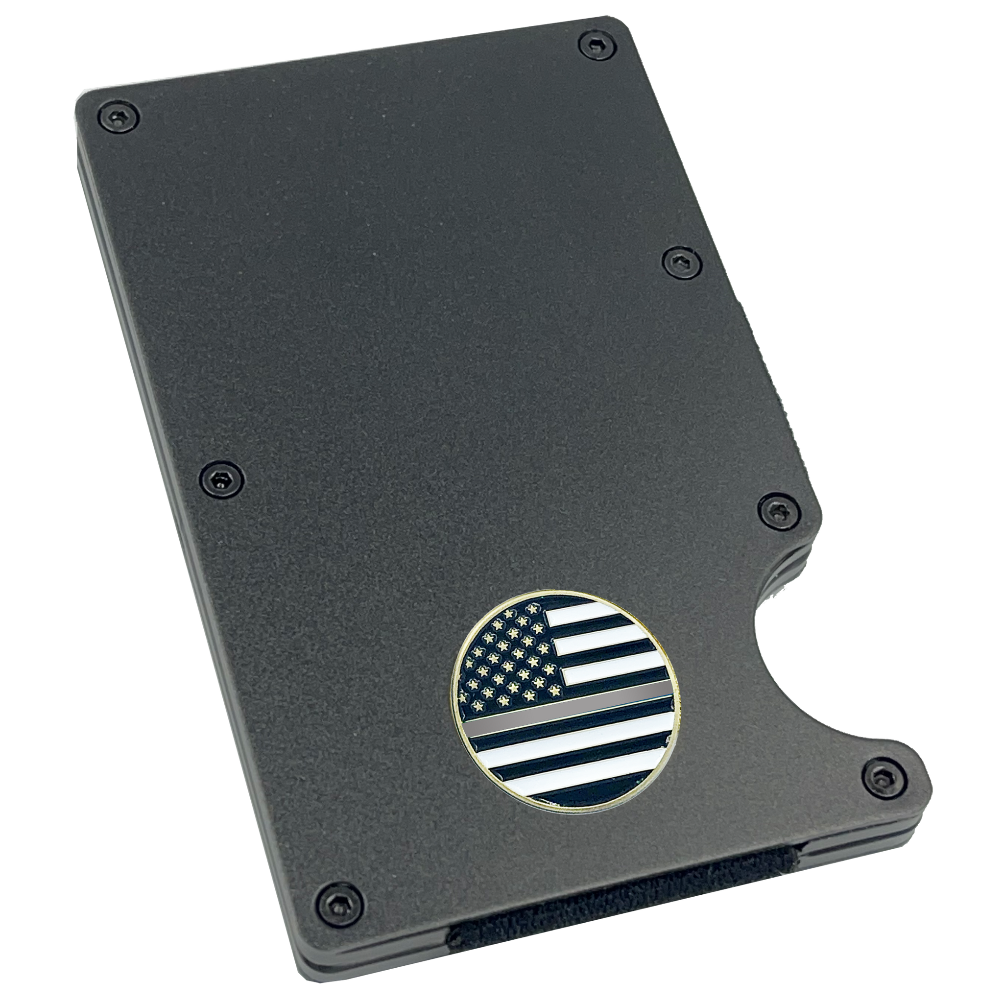 EL3-009 Thin Gray Line Correctional Officer Money Clip RFID Blocking Front Pocket Wallet Premium Minimalist Wallets for Men Minimalist Slim Credit Card Holder Business Card Holder Mens Aluminum Metal Wallet CO Corrections