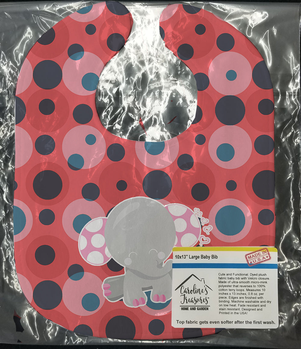 Decorate your space with our Elephant artwork on a Baby Bib. Cute and Functional. Dyed plush fabric baby bib with Velcro closure. Made of ultra-smooth micro-mink polyester that reverses to 100% cotton terry loops. Measures 10 inches x 13 inches, 0.8 oz. per piece. Edges are finished with binding. Machine washable and dry on low heat. Fade resistant and stain resistant. Top fabric gets even softer after the first wash.