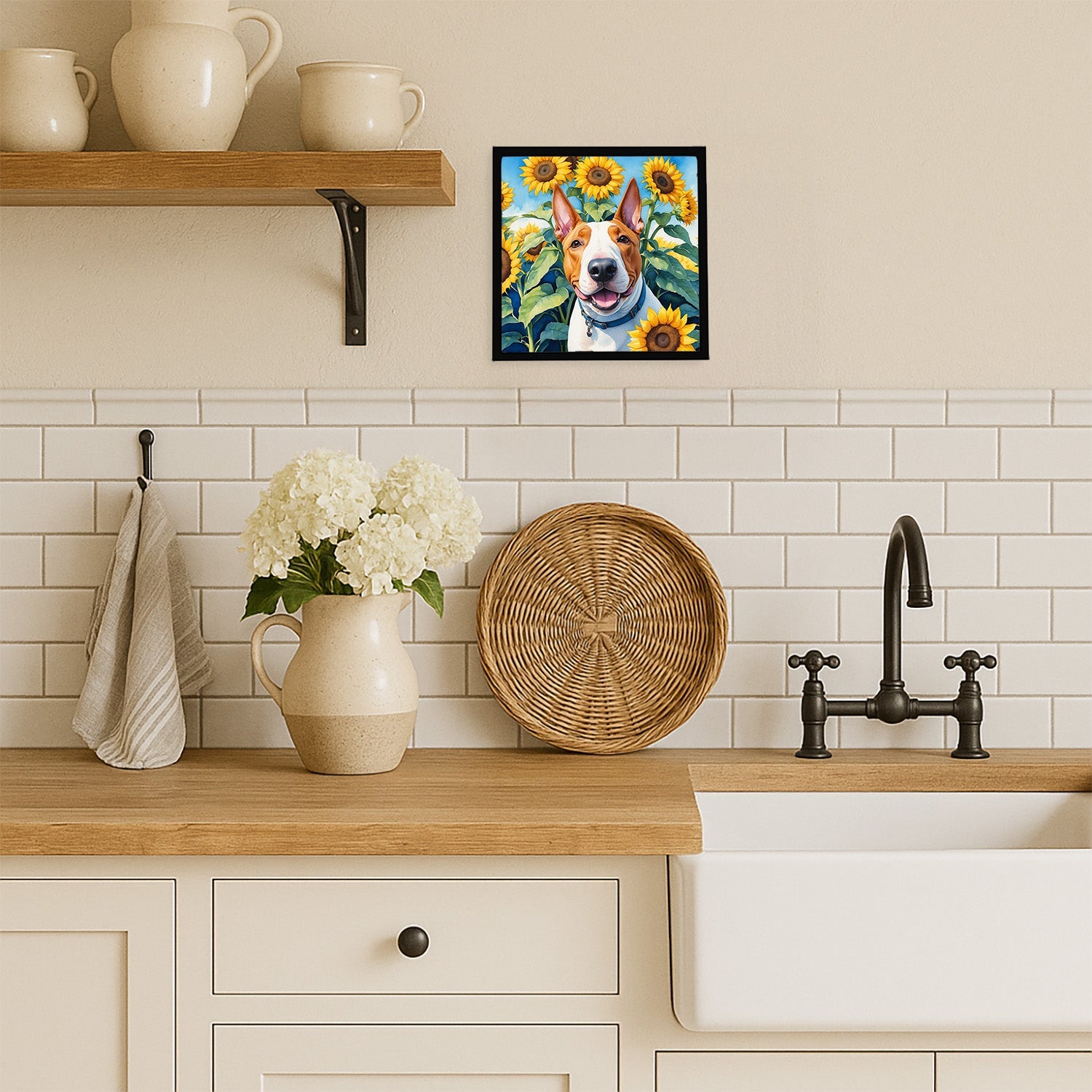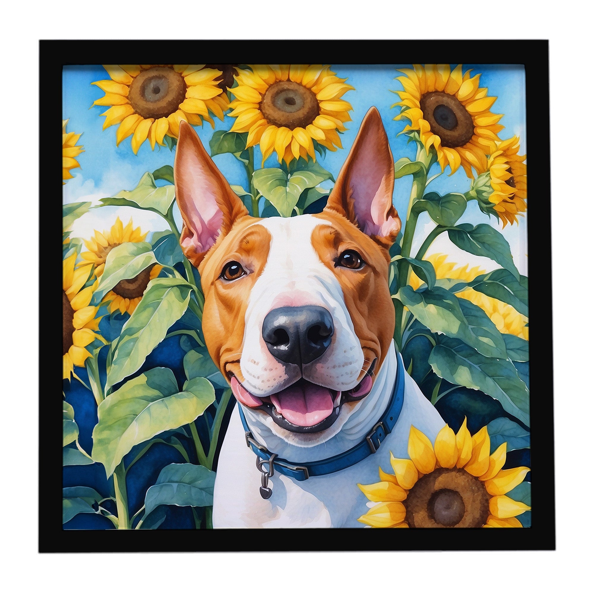 Framed Metal Print featuring breed specific English Bull Terrier artwork. Looking for wall art that’s stylish, safe, and made to last? Our 8x8 Framed Metal Prints are designed with modern living in mind. Each piece features original artwork printed on durable aluminum, set in a sleek frame that measures 3/4 inch deep for a clean, contemporary finish. Unlike glass prints, these are lightweight, shatter-free, and family-safe. Perfect for kitchens, bathrooms, or covered porches where traditional décor might not hold up. The built-in sawtooth hanger molded into the back makes it easy to hang right out of the box—just use your own nails or screws. Cleaning is simple too: a quick wipe with a damp cloth and mild soap keeps your artwork looking vibrant. Proudly made in Alabama, every print supports our community of artists while adding personality and charm to your home.