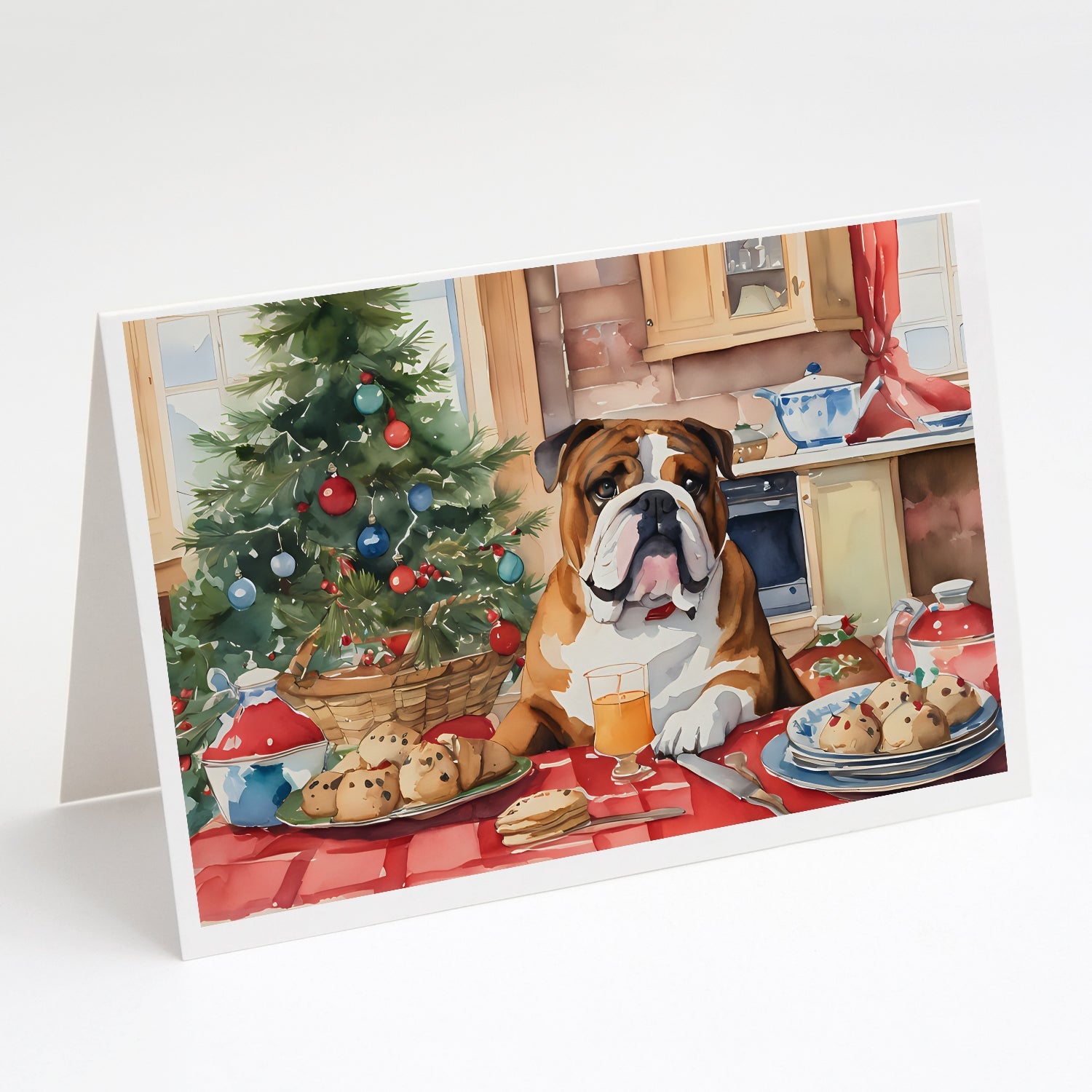 Decorate your space with our Christmas English Bulldog artwork on a . Celebrate special moments with Caroline's Treasures Printed Greeting Card Pack. This pack includes eight beautifully folded 5x7 cards, accompanied by eight matching white envelopes. With blank interiors, these cards provide ample space for your personalized messages and heartfelt holiday greetings. Each card features captivating full-color artwork, meticulously printed in our facility on high-quality 80 lb cover stock or 216 GSM. The super smooth finish of the white cards enhances the visual impact of the artwork, creating a truly stunning presentation. Designed by our talented in-house artists or licensed artists, the artwork on these cards showcases their creativity and attention to detail. From vibrant illustrations to captivating designs, each card tells its own unique story. Whether it's for birthdays, anniversaries, holidays, or any special occasion, Caroline's Treasures Greeting Card Pack is the perfect way to convey your heartfelt sentiments. Share joy, love, and warm wishes with these exquisite cards and make every moment unforgettable.