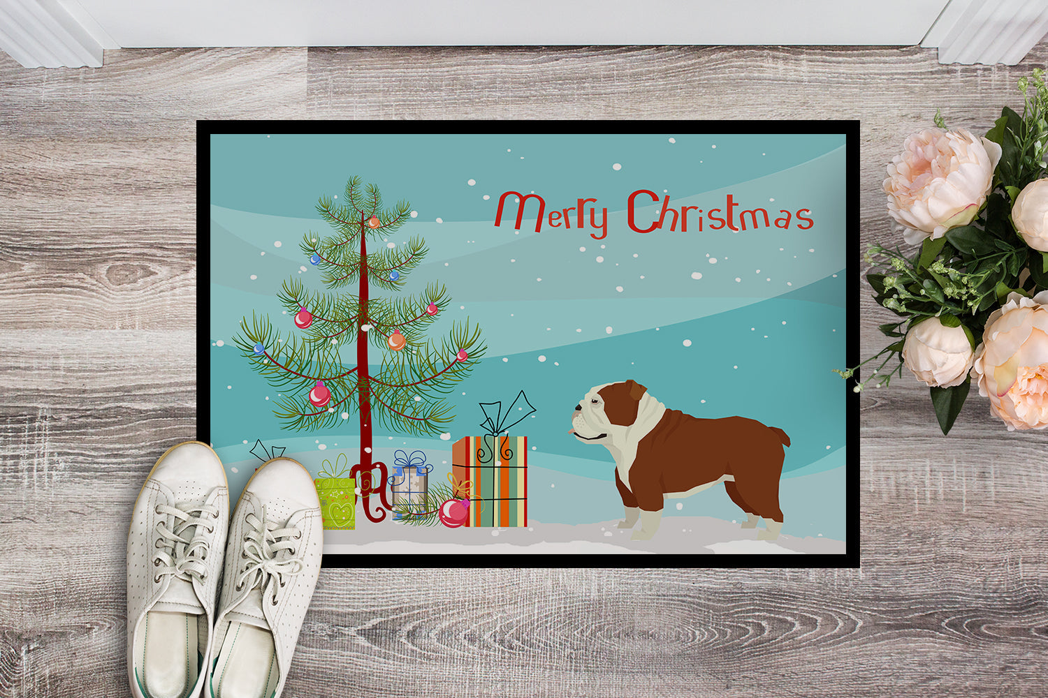 English Bulldog Christmas Tree Doormat - 24x36 Decorative Floor Mat – Indoor/Outdoor Rug with Artistic Flair CK3536JMAT