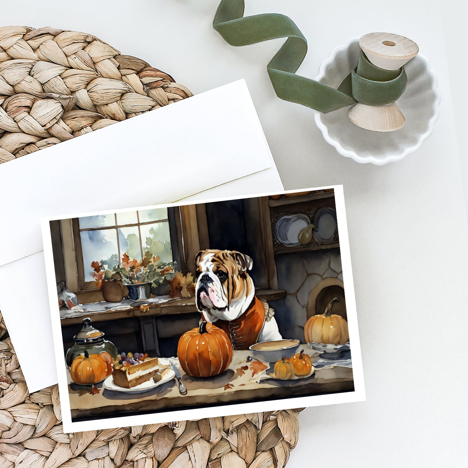 English Bulldog Fall Kitchen Pumpkins Greeting Cards -  Blank Note Cards – 8-Pack of Artist-Designed Cards with Envelopes