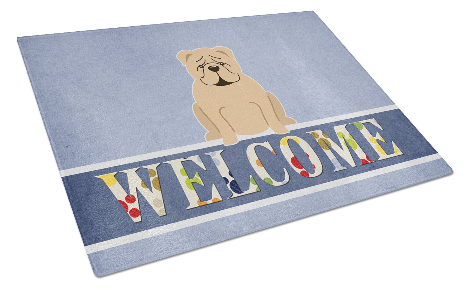 English Bulldog Fawn Welcome Glass Cutting Boards – Durable, Decorative Kitchen Art Large BB5705LCB