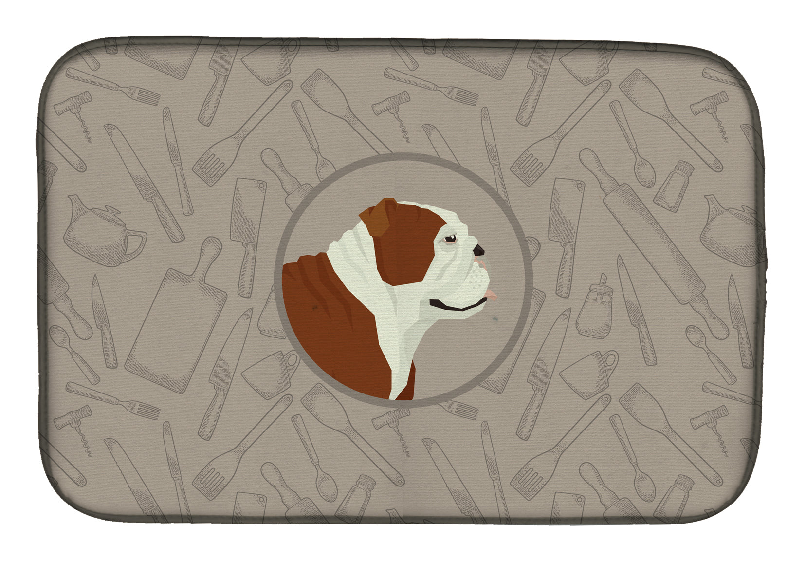 Decorate your space with our Bulldog, English Bulldog artwork on a Dish Drying Mat. Say goodbye to messy countertops and soggy dish towels with our innovative dish drying mat. Our high-quality dish drying pad is designed to keep your countertops dry while offering a stylish and efficient solution. Whether you're air drying dishes, glasses, stemware, silverware, pots, pans, bottles, or even fruits and vegetables, our dish mat is the perfect choice. The 14 inches x 22 inches size fits most counters and dish drying racks, and the non-slip design ensures stability. Made with water-absorbent polyester and a polyurethane foam insert, our dish drying mat is not only functional but also durable. It's machine washable and printed in the USA for long-lasting use. The beautiful artwork adds flair to your kitchen decor, making it a perfect housewarming gift or present for any occasion. Upgrade your kitchen experience with our absorbent and versatile dish drying mat.