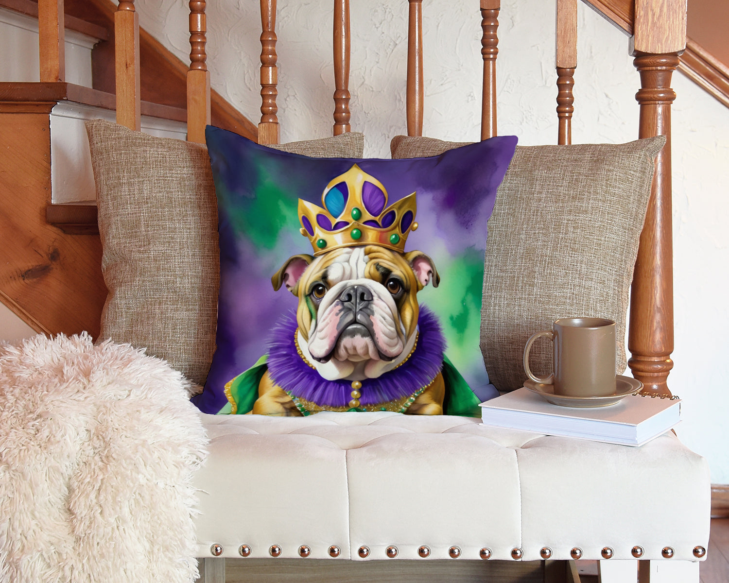 Throw Pillow featuring breed specific English Bulldog artwork. Celebrate Mardi Gras with this Mardi Gras Pillow. Add a touch of vibrancy and comfort to your outdoor seating with Caroline's Treasures Fabric Decorative Pillow. Measuring approximately 14 inches by 14 inches, this outdoor pillow is crafted to elevate the appeal of your patio furniture, infusing it with vivid color and artistic flair. The pillow includes a 100% Polyester Fabric sham filled with a quality pillow form to provide superior comfort. Innovatively made from our brand new material, specifically woven for its water resistance, this pillow is designed for durability. The soft canvas fabric offers versatility in use, fit for your indoor couch or your outdoor patio, porch, or veranda. The fabric is dyed with colorfast dyes built for resilience against weather conditions, ensuring the pillow retains its beauty over time. Constructed by sewing three fabric pieces to create a sham, the polyester insert is then nestled inside to form the pillow, resulting in an overstuffed pillow that maintains its shape. Both the sham and the pillow insert are proudly made in the United States. As the pillows are handcrafted, there may be minor variations in size, further enhancing their unique charm. Experience comfort in style with Caroline's Treasures Fabric Decorative Pillow.