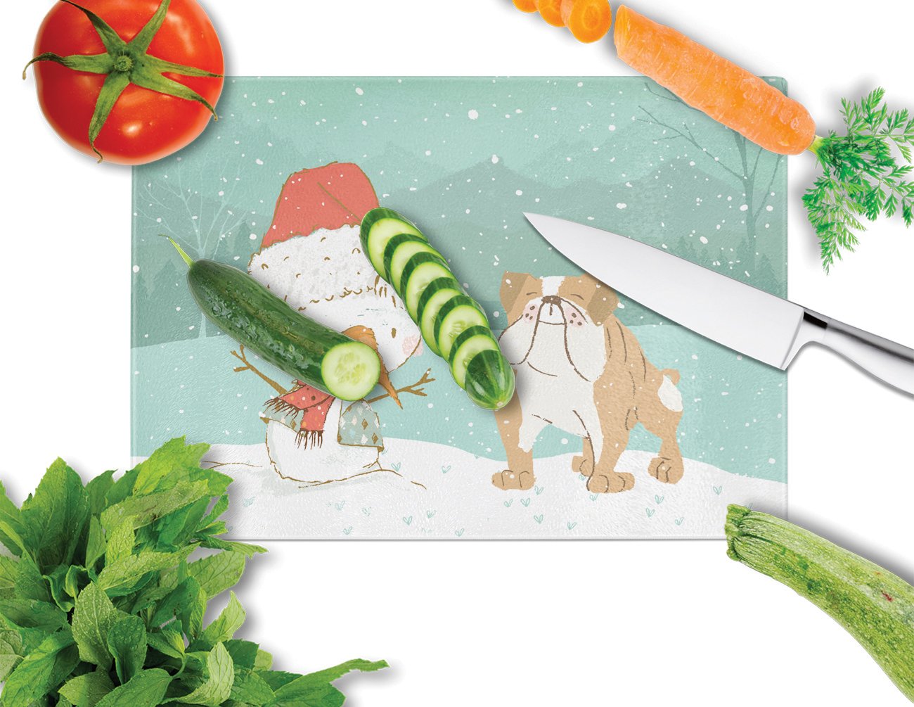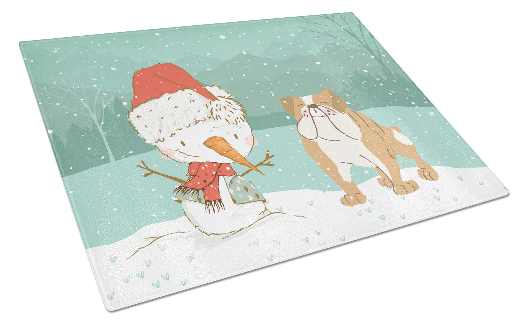 English Bulldog Snowman Christmas Glass Cutting Boards – Durable, Decorative Kitchen Art Large CK2053LCB