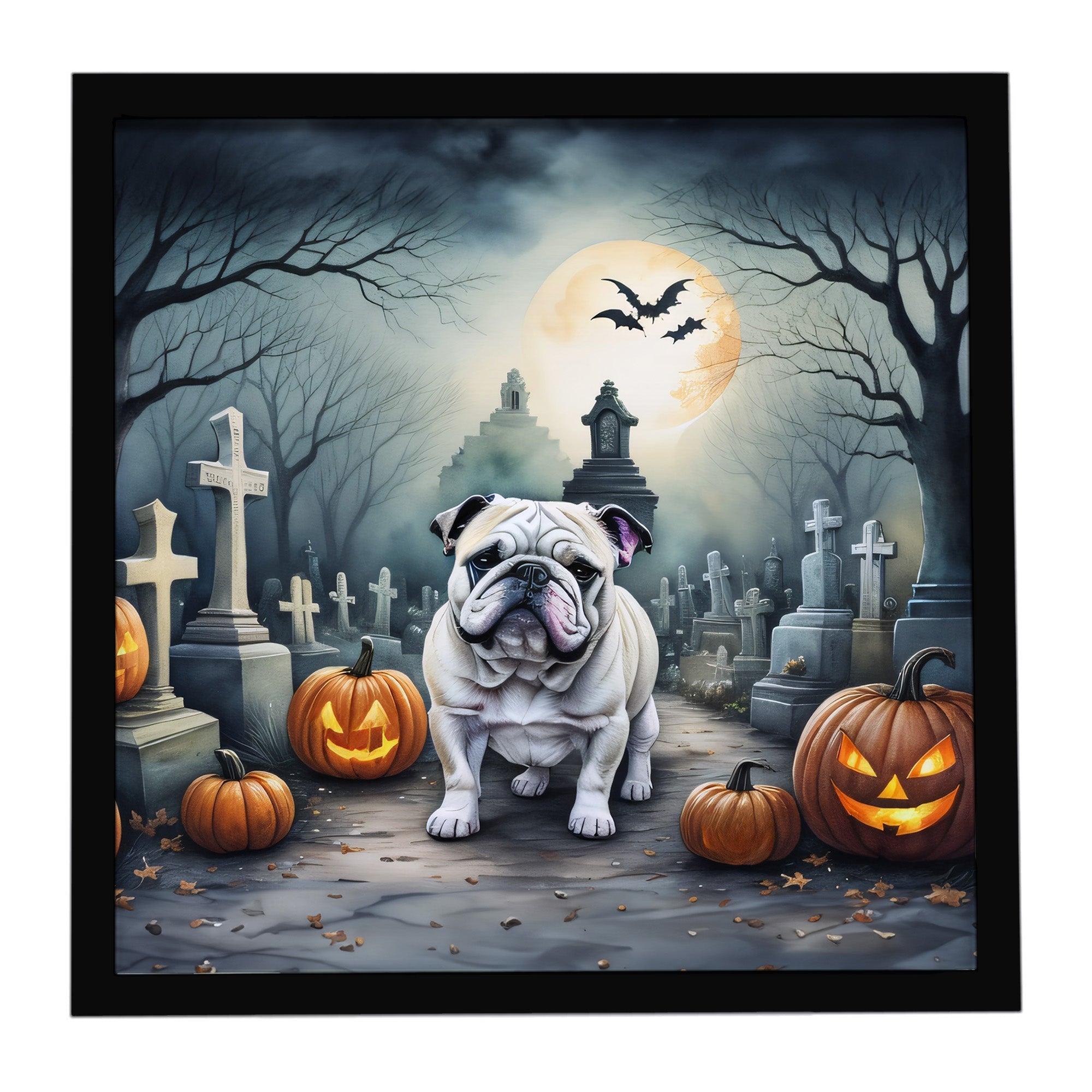 Framed Metal Print featuring breed specific English Bulldog artwork. Celebrate Halloween with this Halloween Framed Metal Print. Looking for wall art that’s stylish, safe, and made to last? Our 8x8 Framed Metal Prints are designed with modern living in mind. Each piece features original artwork printed on durable aluminum, set in a sleek frame that measures 3/4 inch deep for a clean, contemporary finish. Unlike glass prints, these are lightweight, shatter-free, and family-safe. Perfect for kitchens, bathrooms, or covered porches where traditional décor might not hold up. The built-in sawtooth hanger molded into the back makes it easy to hang right out of the box—just use your own nails or screws. Cleaning is simple too: a quick wipe with a damp cloth and mild soap keeps your artwork looking vibrant. Proudly made in Alabama, every print supports our community of artists while adding personality and charm to your home.
