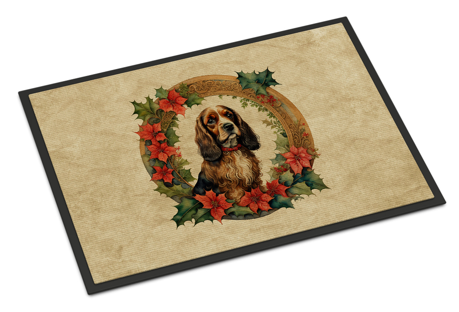 English Cocker Spaniel Christmas Flowers Doormat-24x36 Indoor / Outdoor Rug | Made in USA