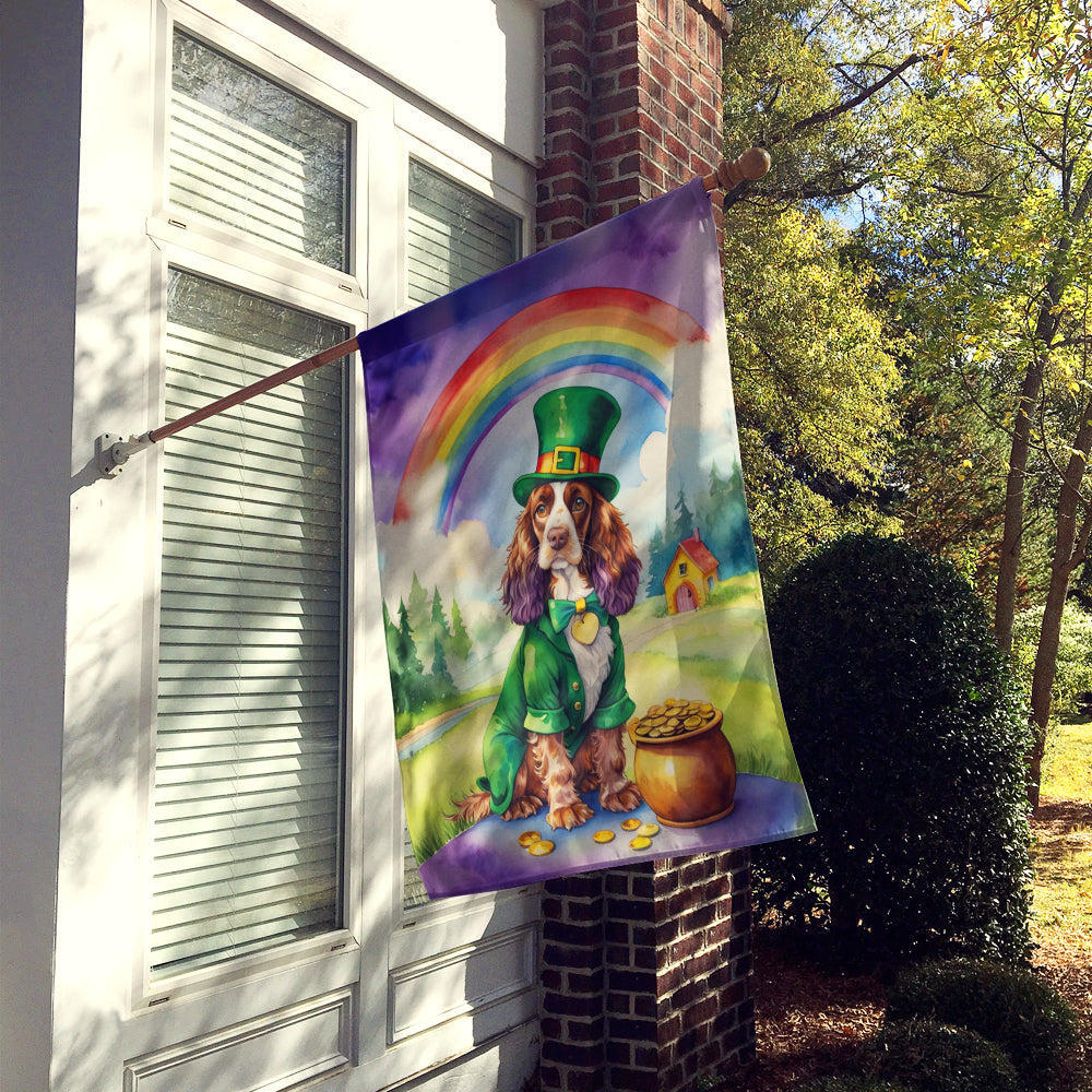 Decorate your space with our St Patrick's Day English Cocker Spaniel artwork on a Large Flag. Presenting our Heavy Duty Polyester House Size Decorative Sleeve Pole Flag, a vibrant addition to enhance the aesthetic appeal of your home. This large decorative flag, measuring approximately 28 x 40 inches, offers ample coverage and visibility. Each flag is meticulously sewn and made individually, ensuring a unique piece that may slightly vary in size. It's a sleeve pole flag, designed to fit a standard decorative flag pole effortlessly. Please note that the flag pole and bracket are not included and should be purchased separately. What sets our flag apart is its dual-sided print. The design is mirrored on both sides of the fabric, allowing for uniform visibility regardless of the angle. Printed in full color, our flag showcases vibrant hues that truly stand out. To ensure lasting vibrancy and durability, the dyes are heat-set into the fabric. This ensures your flag remains bright and captivating through various weather conditions. Elevate the look of your home with our Heavy Duty Polyester House Size Decorative Sleeve Pole Flag!