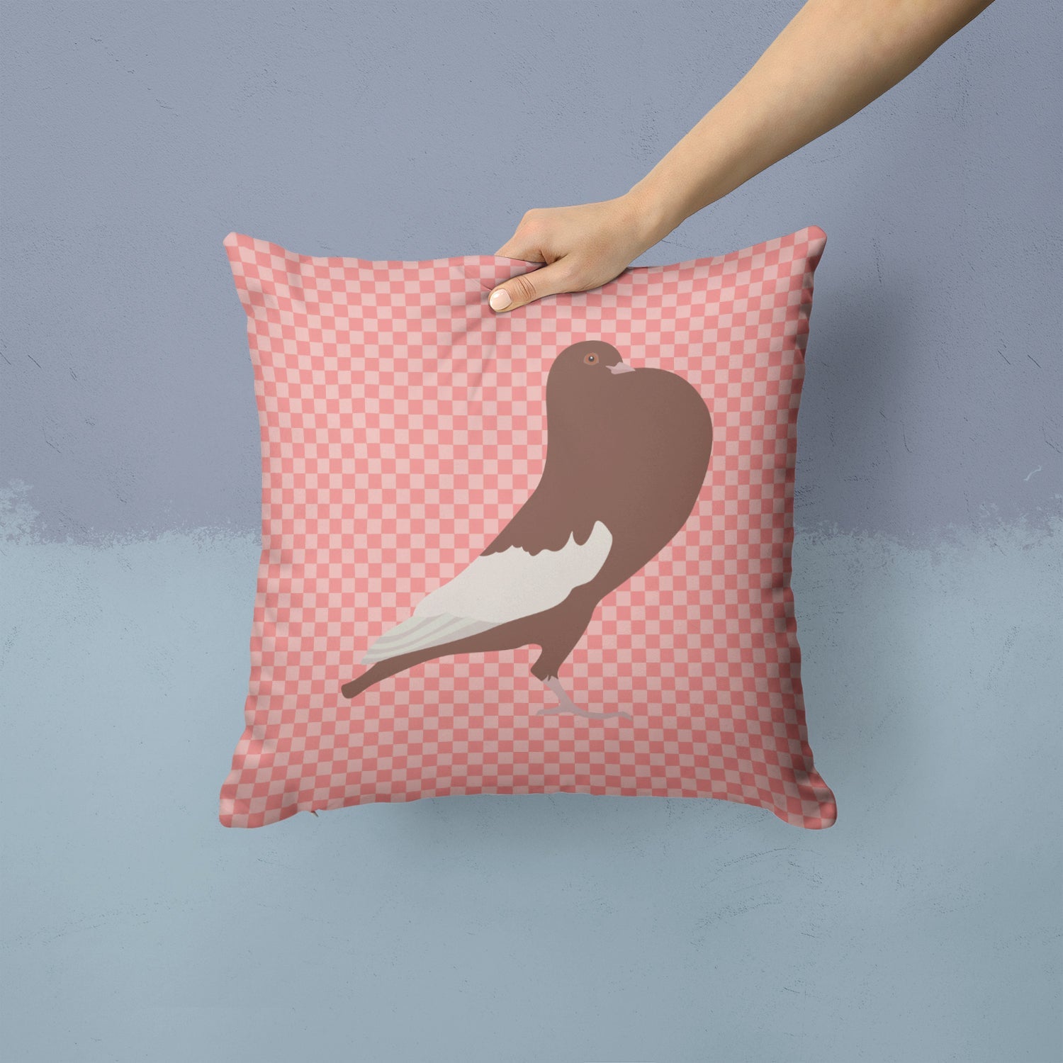 English Pouter Pigeon Pink Check Throw Pillow - 14x14 Decorative Pillow – Art for Your Home & Patio BB7954PW1414