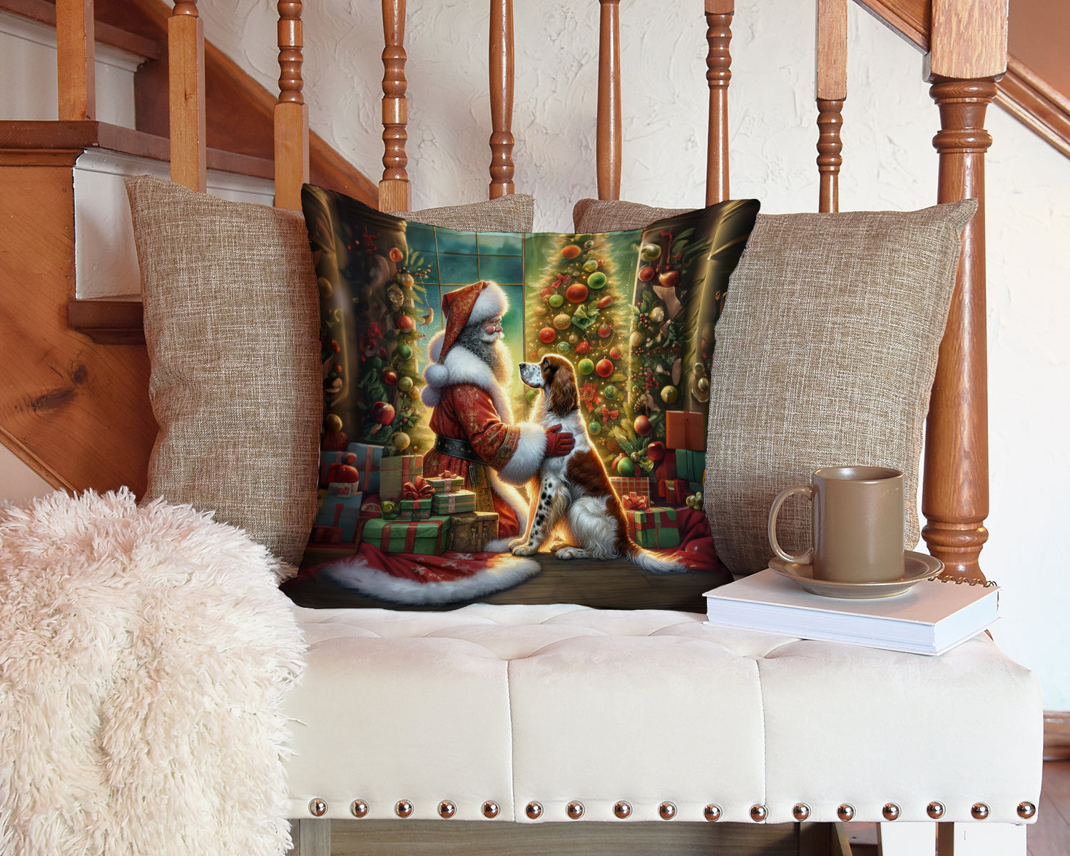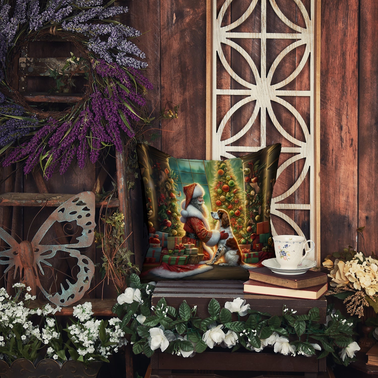 Throw Pillow featuring breed specific English Setter artwork. Celebrate Christmas with this Christmas Pillow. Add a touch of vibrancy and comfort to your outdoor seating with Caroline's Treasures Fabric Decorative Pillow. Measuring approximately 14 inches by 14 inches, this outdoor pillow is crafted to elevate the appeal of your patio furniture, infusing it with vivid color and artistic flair. The pillow includes a 100% Polyester Fabric sham filled with a quality pillow form to provide superior comfort. Innovatively made from our brand new material, specifically woven for its water resistance, this pillow is designed for durability. The soft canvas fabric offers versatility in use, fit for your indoor couch or your outdoor patio, porch, or veranda. The fabric is dyed with colorfast dyes built for resilience against weather conditions, ensuring the pillow retains its beauty over time. Constructed by sewing three fabric pieces to create a sham, the polyester insert is then nestled inside to form the pillow, resulting in an overstuffed pillow that maintains its shape. Both the sham and the pillow insert are proudly made in the United States. As the pillows are handcrafted, there may be minor variations in size, further enhancing their unique charm. Experience comfort in style with Caroline's Treasures Fabric Decorative Pillow.