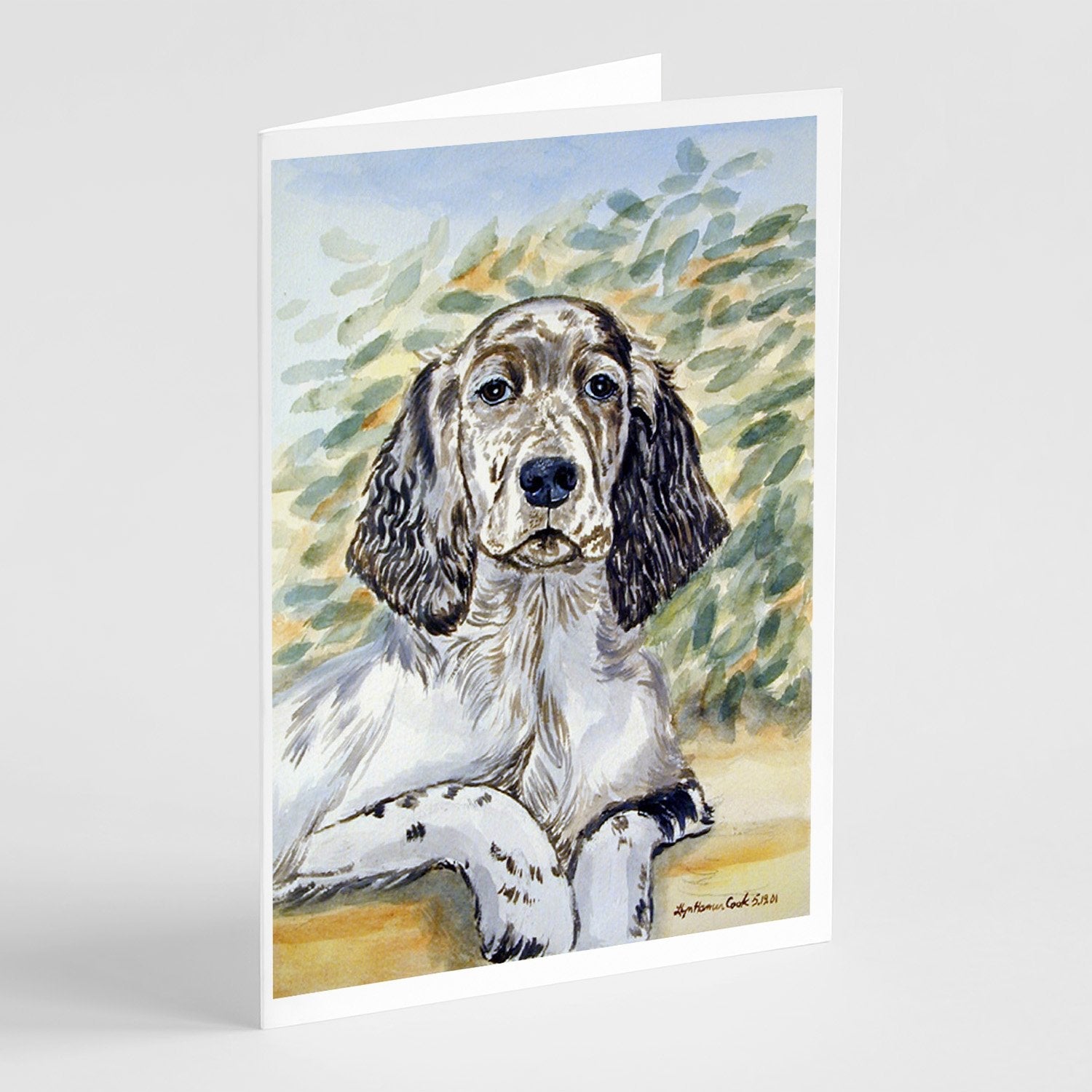 Decorate your space with our English Setter artwork on a . Celebrate special moments with Caroline's Treasures Printed Greeting Card Pack. This pack includes eight beautifully folded 5x7 cards, accompanied by eight matching white envelopes. With blank interiors, these cards provide ample space for your personalized messages and heartfelt holiday greetings. Each card features captivating full-color artwork, meticulously printed in our facility on high-quality 80 lb cover stock or 216 GSM. The super smooth finish of the white cards enhances the visual impact of the artwork, creating a truly stunning presentation. Designed by our talented in-house artists or licensed artists, the artwork on these cards showcases their creativity and attention to detail. From vibrant illustrations to captivating designs, each card tells its own unique story. Whether it's for birthdays, anniversaries, holidays, or any special occasion, Caroline's Treasures Greeting Card Pack is the perfect way to convey your heartfelt sentiments. Share joy, love, and warm wishes with these exquisite cards and make every moment unforgettable.