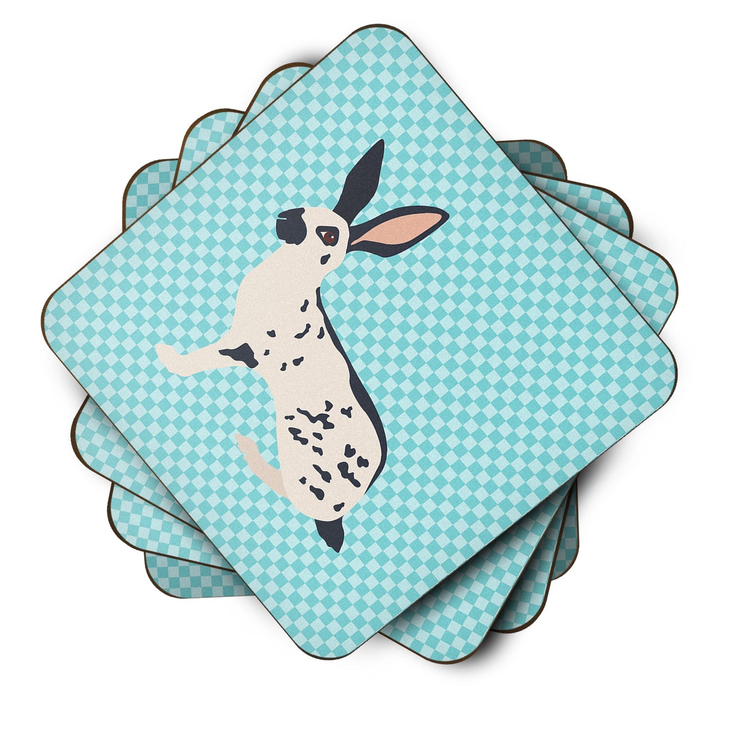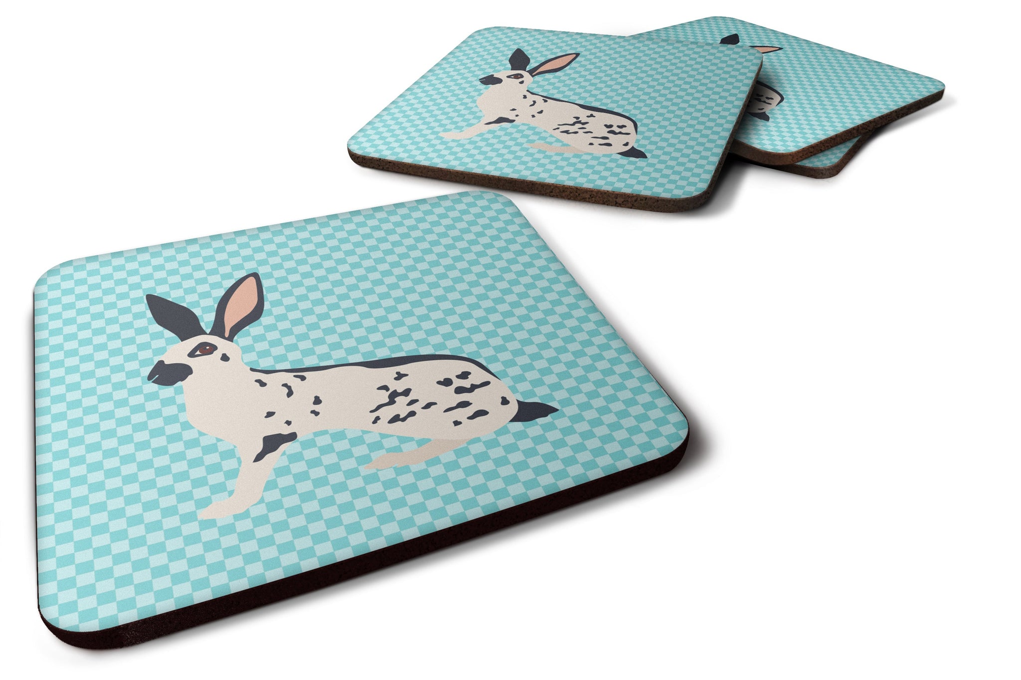 Decorate your space with our English Spot Rabbit artwork on a Coaster set. Presenting our Set of 4 Foam Coasters, a stylish and practical addition to your table setting. Each square coaster, measuring 3 1/2 inches by 3 1/2 inches, is perfectly sized to accommodate various drinkware, from coffee mugs to tumblers. These coasters stand out with their full-color artwork, permanently dyed onto the material for a vibrant and fade-resistant finish. They're not just functional, they're a fashionable statement, adding a touch of flair to any gathering or event. Our foam coasters serve a dual purpose - they protect your table from water stains and are perfect for both hot and cold drinks. The material used is similar to that of our high-quality mouse pads, ensuring durability and heat resistance. These coasters are easy to maintain - simply wash them in the top of your dishwasher and lay flat to dry. The design won't come off, ensuring they retain their vivid colors for years. Pair them with one of our insulated coolers or huggers for a cohesive, thoughtful gift set. Enhance your beverage experience with our Set of 4 Foam Coasters.