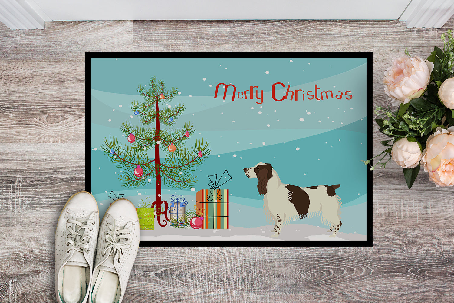 English Springer Spaniel Christmas Tree Doormat - 18x27 Decorative Floor Mat – Indoor/Outdoor Rug with Artistic Flair CK3537MAT