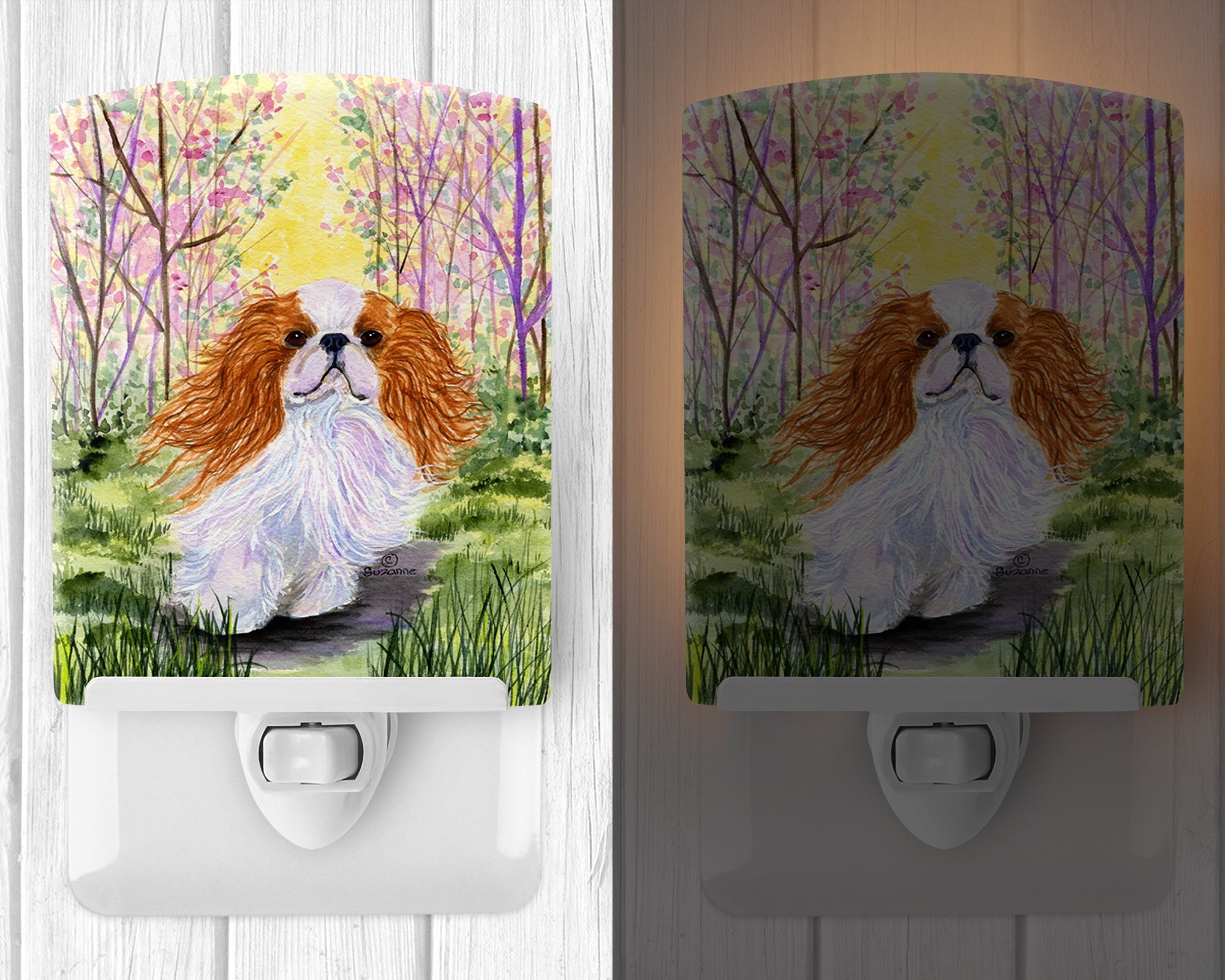 Decorate your space with our English Toy Spaniel artwork on a Night Light. Introduce a splash of artistic flair and subtle illumination to your space with the Decorative Ceramic Night Light from Caroline's Treasures. Perfect for any room, this night light seamlessly blends functionality with an aesthetic appeal, offering a stylish solution to brighten up dark corners of your home or office. Boasting a six-inch high by four-inch wide ceramic tile at the front, it showcases vivid, full-color artwork from distinguished artists, transforming a simple utility into a vibrant art piece. The artwork is securely encased in a robust metal holder, ensuring durability and longevity. Two screws are provided to firmly affix the tile into the holder. The holder extends three inches deep, housing an included bulb that emits a soft, welcoming glow. This product meets all safety standards, as evidenced by its UL approval. Proudly made in the United States from imported components, this Decorative Ceramic Night Light is not just a functional device; it's a statement piece that enhances the ambiance of your surroundings.