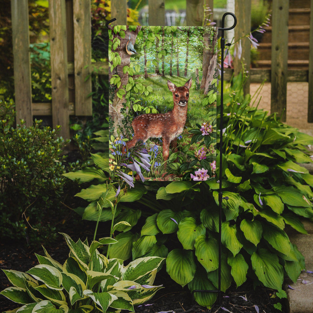Decorate your space with our Deer artwork on a Garden Flag. Enhance the beauty of your garden, patio, or yard with Caroline's Treasures Decorative Garden Flag, proudly made in the USA. Crafted from two pieces of thick, double-sided polyester fabric, this 2-ply garden flag is designed to withstand various weather conditions, making it water-resistant and weatherproof. Featuring correctly readable words on both sides, this garden flag offers a delightful visual experience from any angle. With its heavier weight, it stands out among other garden flags, ensuring stability and durability even in wind, rain, and snow. Measuring approximately 11 1/4 inches by 15 1/2 inches, this flag allows you to personalize your outdoor decor. It comes with a 1 1/2-inch sleeve sewn in, allowing easy attachment to any standard garden flag stand or garden size porch hanger (sold separately). Make a statement in your outdoor space with Caroline's Treasures Decorative Garden Flag, a vibrant and high-quality flag that adds color and personality to your surroundings. Proudly made in the USA, it's a symbol of quality craftsmanship and attention to detail.