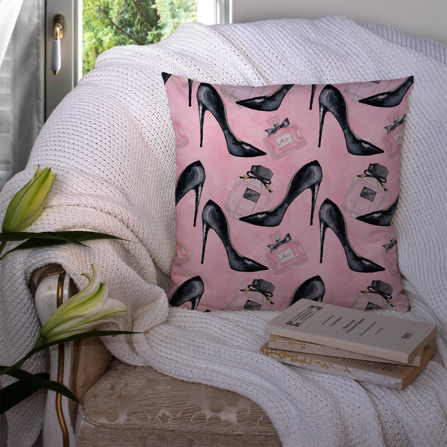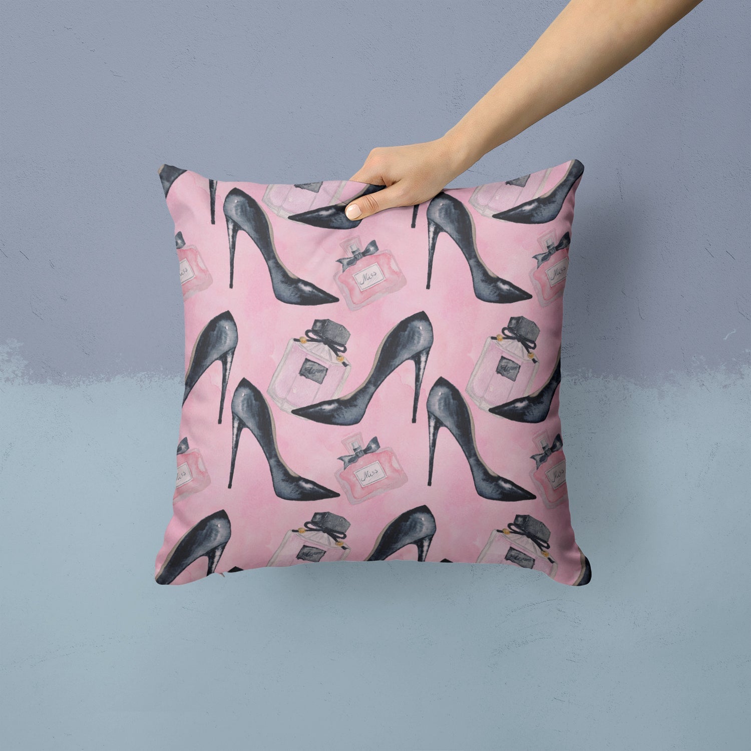 Fashion Diva Shoes and Perfume Throw Pillow - 14x14 Decorative Pillow – Art for Your Home & Patio BB7507PW1414