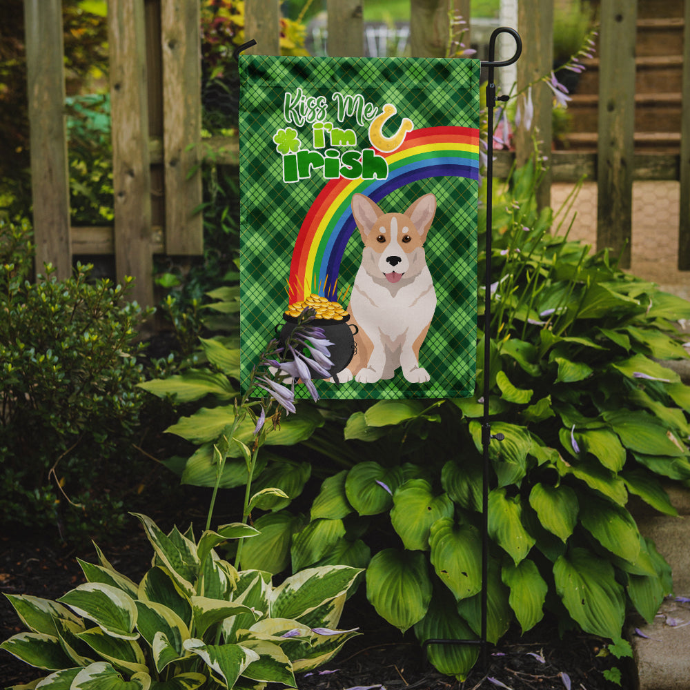 Decorate your space with our St Patrick's Day Corgi artwork on a Garden Flag. Enhance the beauty of your garden, patio, or yard with Caroline's Treasures Decorative Garden Flag, proudly made in the USA. Crafted from two pieces of thick, double-sided polyester fabric, this 2-ply garden flag is designed to withstand various weather conditions, making it water-resistant and weatherproof. Featuring correctly readable words on both sides, this garden flag offers a delightful visual experience from any angle. With its heavier weight, it stands out among other garden flags, ensuring stability and durability even in wind, rain, and snow. Measuring approximately 11 1/4 inches by 15 1/2 inches, this flag allows you to personalize your outdoor decor. It comes with a 1 1/2-inch sleeve sewn in, allowing easy attachment to any standard garden flag stand or garden size porch hanger (sold separately). Make a statement in your outdoor space with Caroline's Treasures Decorative Garden Flag, a vibrant and high-quality flag that adds color and personality to your surroundings. Proudly made in the USA, it's a symbol of quality craftsmanship and attention to detail.