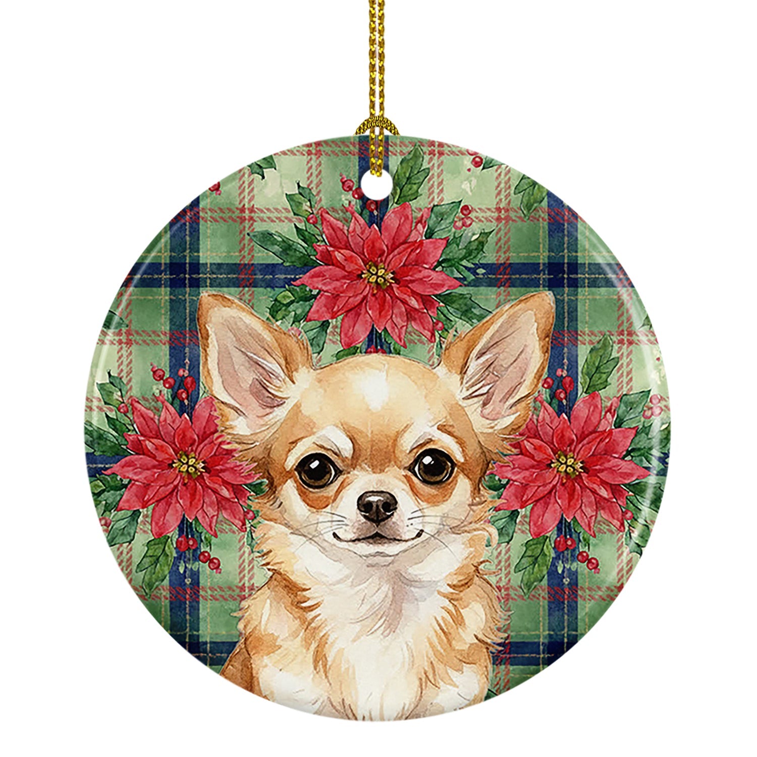 Fawn Chihuahua Christmas PoinsettIas Ceramic Ornament
