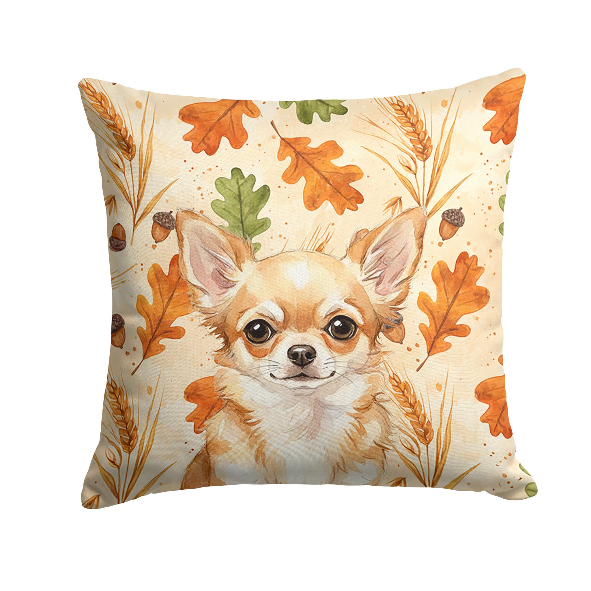 Throw Pillow featuring breed specific Chihuahua artwork. Celebrate Thanksgiving with this Thanksgiving Pillow. Add a touch of vibrancy and comfort to your outdoor seating with Caroline's Treasures Fabric Decorative Pillow. Measuring approximately 14 inches by 14 inches, this outdoor pillow is crafted to elevate the appeal of your patio furniture, infusing it with vivid color and artistic flair. The pillow includes a 100% Polyester Fabric sham filled with a quality pillow form to provide superior comfort. Innovatively made from our brand new material, specifically woven for its water resistance, this pillow is designed for durability. The soft canvas fabric offers versatility in use, fit for your indoor couch or your outdoor patio, porch, or veranda. The fabric is dyed with colorfast dyes built for resilience against weather conditions, ensuring the pillow retains its beauty over time. Constructed by sewing three fabric pieces to create a sham, the polyester insert is then nestled inside to form the pillow, resulting in an overstuffed pillow that maintains its shape. Both the sham and the pillow insert are proudly made in the United States. As the pillows are handcrafted, there may be minor variations in size, further enhancing their unique charm. Experience comfort in style with Caroline's Treasures Fabric Decorative Pillow.