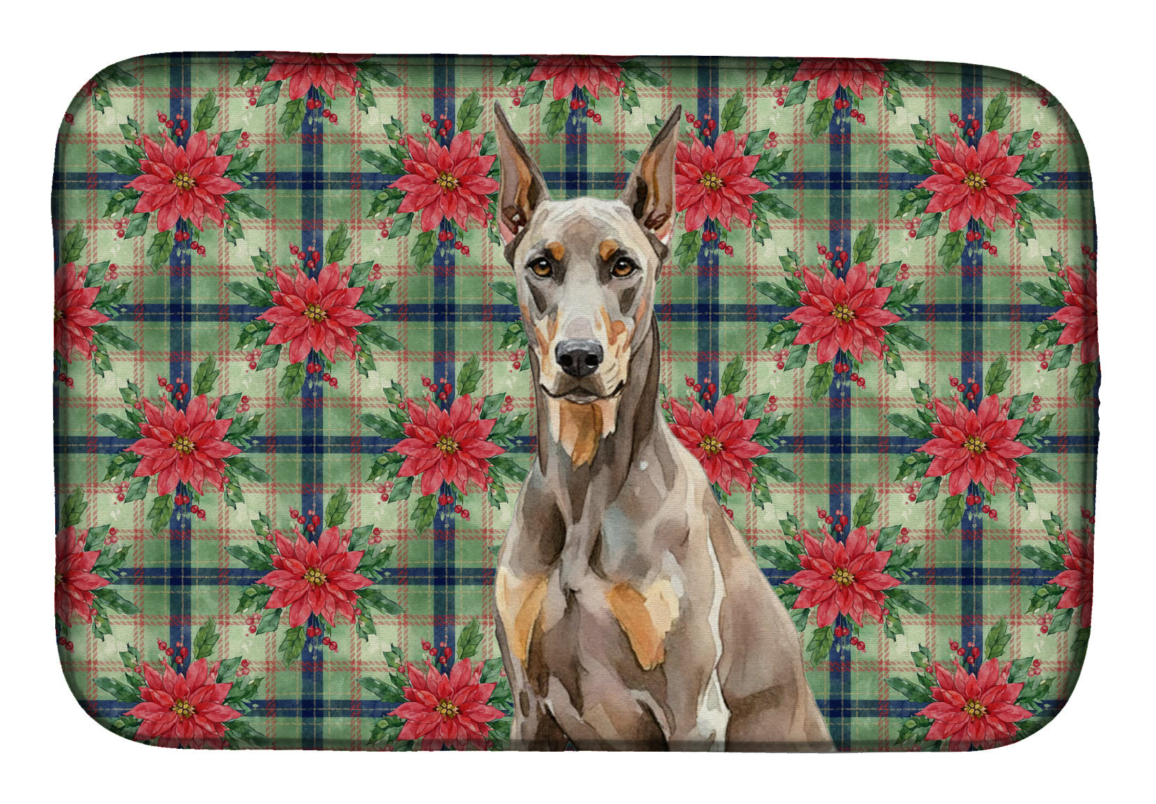 Dish Drying Mat featuring breed specific Doberman Pinscher artwork. Celebrate Christmas with this Christmas Dish Drying Mat. Say goodbye to messy countertops and soggy dish towels with our innovative dish drying mat. Our high-quality dish drying pad is designed to keep your countertops dry while offering a stylish and efficient solution. Whether you're air drying dishes, glasses, stemware, silverware, pots, pans, bottles, or even fruits and vegetables, our dish mat is the perfect choice. The 14 inches x 22 inches size fits most counters and dish drying racks, and the non-slip design ensures stability. Made with water-absorbent polyester and a polyurethane foam insert, our dish drying mat is not only functional but also durable. It's machine washable and printed in the USA for long-lasting use. The beautiful artwork adds flair to your kitchen decor, making it a perfect housewarming gift or present for any occasion. Upgrade your kitchen experience with our absorbent and versatile dish drying mat.