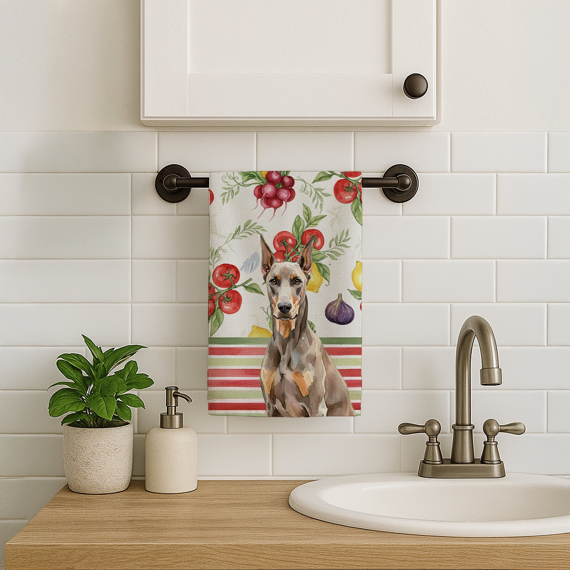 Fawn Doberman Pinscher Vegetables Kitchen Towel