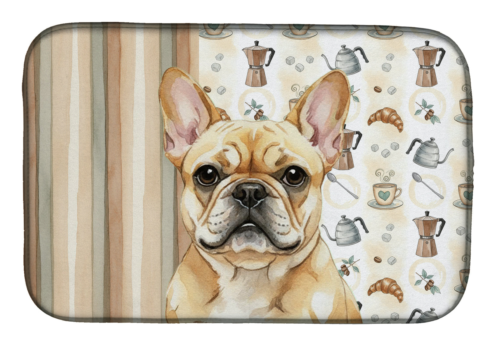 Shown here is the Fawn French Bulldog Coffee Bar Dish Drying Mat from Caroline's Treasures featuring artwork of a French Bulldog in a Everyday design. The detailed illustration and vibrant colors make it a standout accent that celebrates both seasonal style and love for the subject. This image features a cozy watercolor coffee-themed pattern with illustrated mugs, moka pots, kettles, croissants, coffee beans, and sugar cubes arranged in a repeating design. Soft neutral tones with warm browns, creams, and subtle sage accents create an inviting, café-inspired look that feels comforting and relaxed. Everyday décor celebrates personal style and the small moments that make a house feel like home. Thoughtful designs add warmth and personality that can be enjoyed year-round. Say goodbye to messy countertops and soggy dish towels with our innovative dish drying mat. Our high-quality dish drying pad is designed to keep your countertops dry while offering a stylish and efficient solution. Whether you're air drying dishes, glasses, stemware, silverware, pots, pans, bottles, or even fruits and vegetables, our dish mat is the perfect choice. The 14 inches x 21 inches size fits most counters and dish drying racks, and the non-slip design ensures stability. Made with water-absorbent polyester and a polyurethane foam insert, our dish drying mat is not only functional but also durable. It's machine washable and printed in the USA for long-lasting use. The beautiful artwork adds flair to your kitchen decor, making it a perfect housewarming gift or present for any occasion. Upgrade your kitchen experience with our absorbent and versatile dish drying mat. Perfect for: Kitchen counters and sinks, everyday dish drying and countertop protection, Dogs-themed homes, or year-round use for French Bulldog lovers. French Bulldogs, often called Frenchies, are affectionate companion dogs known for their compact build and charming personality. This popular breed is loved for its adaptability, loyalty, and friendly demeanor. Makes a heartfelt gift for: French Bulldog owners, Dogs lovers, Everyday gifts, pet parents, friends who adore their French Bulldog, or anyone celebrating Dogs.