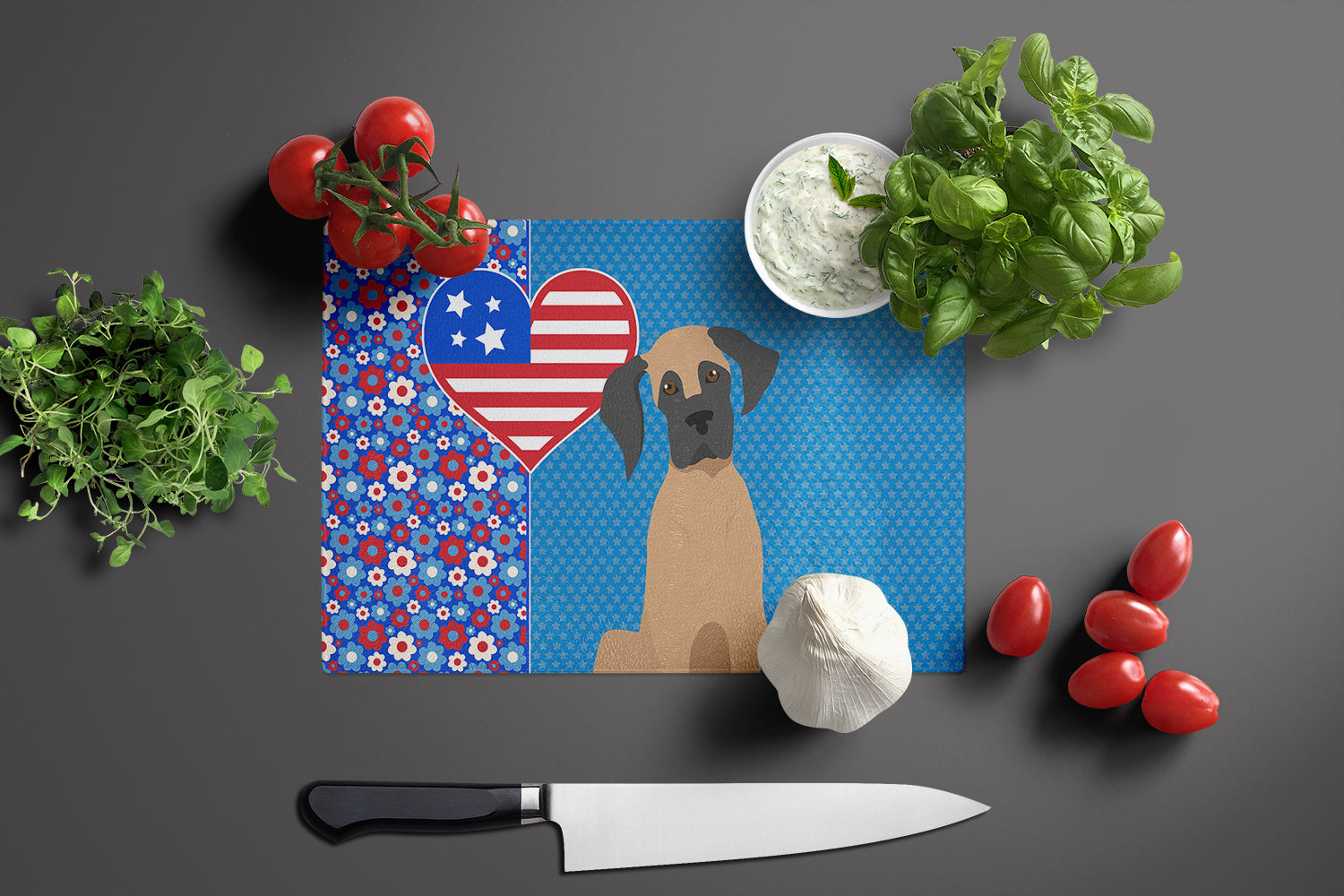 Decorate your space with our Great Dane artwork on a Cutting Board. Introduce your kitchen to the vibrant, large Decorative Glass Cutting Board from Caroline's Treasures. Crafted from resilient tempered glass, this board is not only a utilitarian necessity but also a colorful art piece. With its generous dimensions of 15 inches in height and 12 inches in length, it offers ample space for all your cutting needs. Every piece showcases captivating artwork from distinguished artists, bringing an aesthetic edge to your kitchen. Beyond its attractive design, this cutting board ensures your countertop stays pristine and unscathed, owing to its heat-resistant properties. Engineered with user convenience in mind, it features non-skid feet for stability, and rounded corners for additional safety. Its robust construction renders it virtually unbreakable, guaranteeing longevity. The board comes with protective feet bumpers, maintaining its position during use. This product is recommended to be hand washed only. Proudly printed and assembled in the United States, this cutting board exemplifies superior craftsmanship. With Caroline's Treasures' Decorative Glass Cutting Board, you're investing in a blend of functionality and artistic flair.