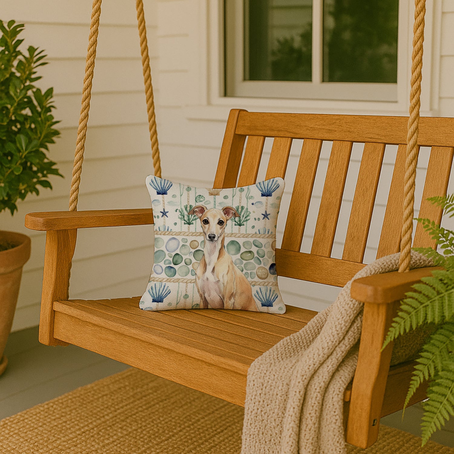 Throw Pillow featuring breed specific Italian Greyhound artwork. Add a touch of vibrancy and comfort to your outdoor seating with Caroline's Treasures Fabric Decorative Pillow. Measuring approximately 14 inches by 14 inches, this outdoor pillow is crafted to elevate the appeal of your patio furniture, infusing it with vivid color and artistic flair. The pillow includes a 100% Polyester Fabric sham filled with a quality pillow form to provide superior comfort. Innovatively made from our brand new material, specifically woven for its water resistance, this pillow is designed for durability. The soft canvas fabric offers versatility in use, fit for your indoor couch or your outdoor patio, porch, or veranda. The fabric is dyed with colorfast dyes built for resilience against weather conditions, ensuring the pillow retains its beauty over time. Constructed by sewing three fabric pieces to create a sham, the polyester insert is then nestled inside to form the pillow, resulting in an overstuffed pillow that maintains its shape. Both the sham and the pillow insert are proudly made in the United States. As the pillows are handcrafted, there may be minor variations in size, further enhancing their unique charm. Experience comfort in style with Caroline's Treasures Fabric Decorative Pillow.