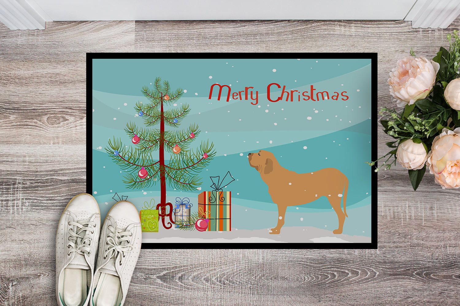 Decorate your space with our Christmas Fila Brasilerio artwork on a Doormat. Welcome your guests in style with our Artwork Door Mat, designed to withstand almost any weather condition. This mat, measuring approximately 24 by 36 inches, is held together by durable black binding tape. Its top layer, composed of polyester felt, is dyed with the eye-catching image you see on the mat. A few layers below provide the mat with stability, while its rubber bottom is stamped to help prevent slipping and ensures safety. Our mat works wonderfully as both an indoor or outdoor door mat. For cleaning, simply hose it off with water or use a power washer - no need for any cleaner that produces suds. Avoid scrubbing with a brush, instead, opt for the vacuum on floor setting. Designed manufactured and printed in the USA, this mat is a perfect addition to your porch, outdoor kitchen, entryway, or any indoor space. Its unique design makes it a charming decorative rug that greets your guests and adds a stylish touch to your home decor.