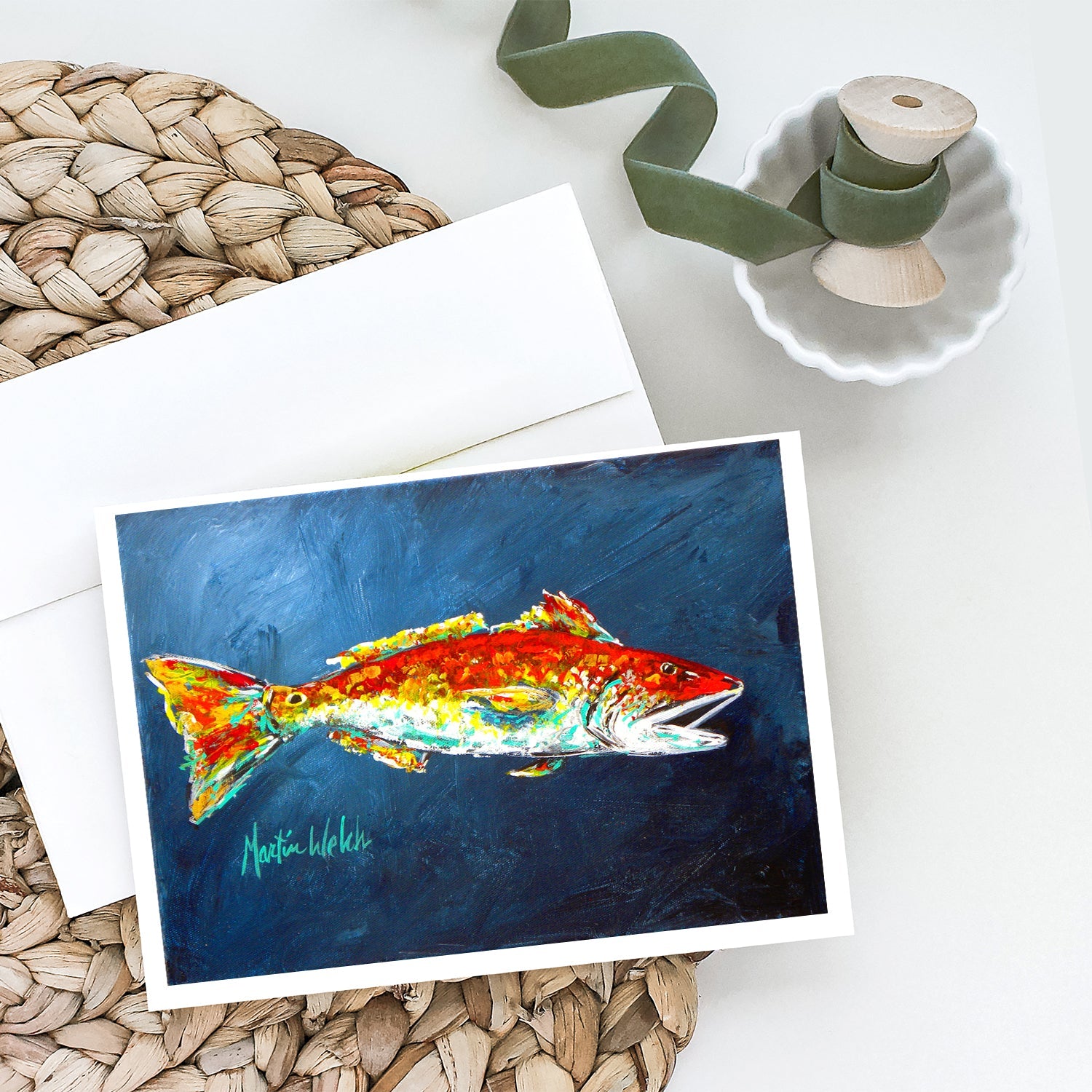 Fish - Red Fish Red for Jarett Greeting Cards - Blank Note Cards – 8-Pack of Artist-Designed Cards with Envelopes