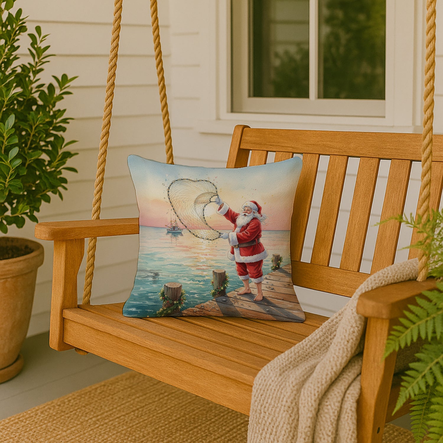 Fishing Santa Claus with Castnet Christmas Throw Pillow