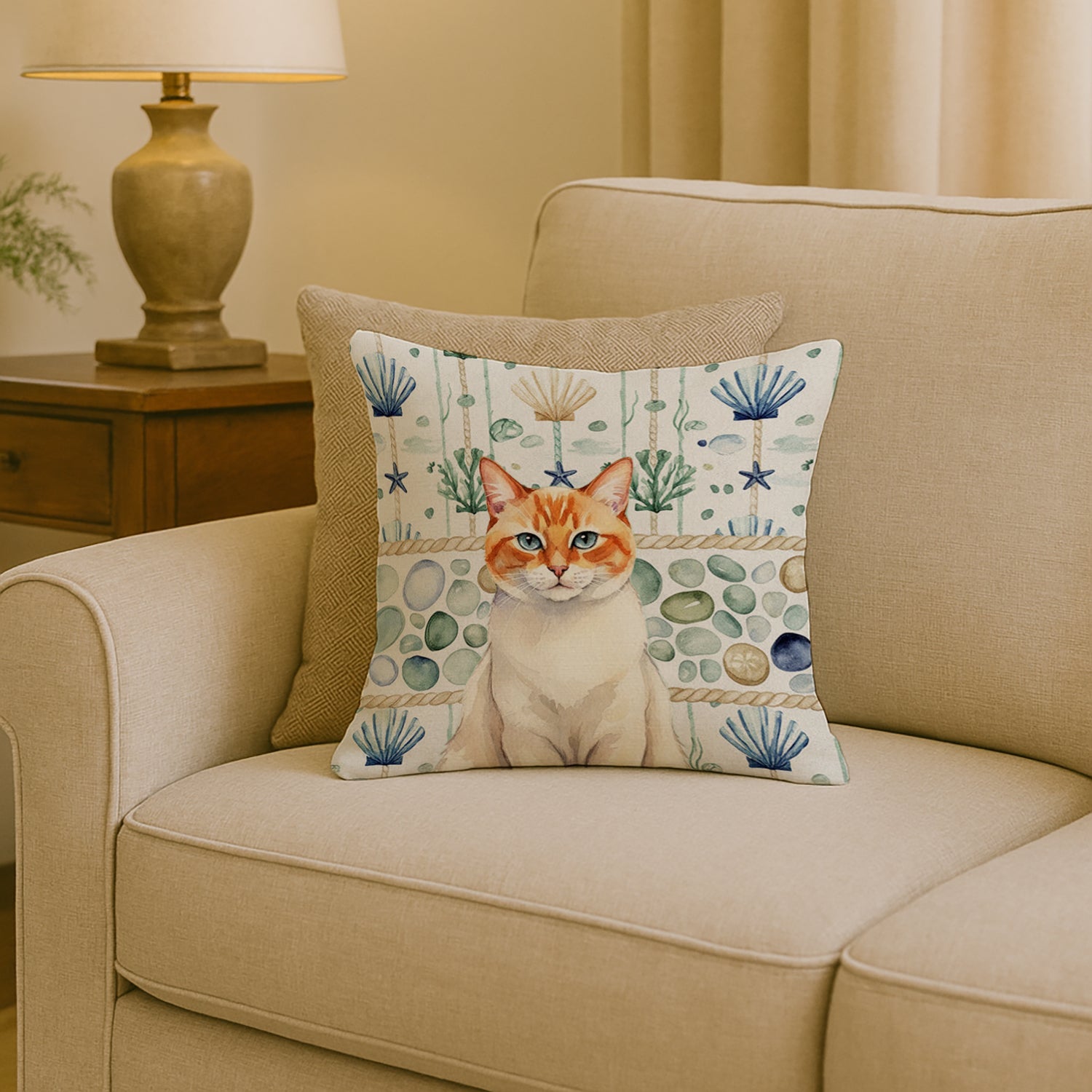 Throw Pillow featuring breed specific Flame Point artwork. Revitalize your outdoor or indoor living space with Caroline's Treasures 18x18 Fabric Decorative Pillow. With a generously sized dimension of approximately 18 inches by 18 inches, this pillow makes a comfortable and aesthetic addition to any seating area. Made from a unique, water-resistant material developed by Caroline's Treasures, the pillow sham is 100% polyester fabric that's durable and ready to weather any condition. Its vibrant, full-color artwork will not fade over time as it is dyed with color-fast dyes. Whether you place it on your patio furniture, porch, veranda, or indoor couch, its soft canvas fabric ensures a cozy experience. The pillow is handcrafted in the United States, featuring a sham created from three pieces of fabric and a polyester insert for enduring shape and overstuffed comfort. Despite being robustly built to endure the outdoors, it is as soft and snug as your favorite indoor cushions. Please note, as all our pillows are handmade, sizes may vary slightly, adding to the charm of this unique decorative item.