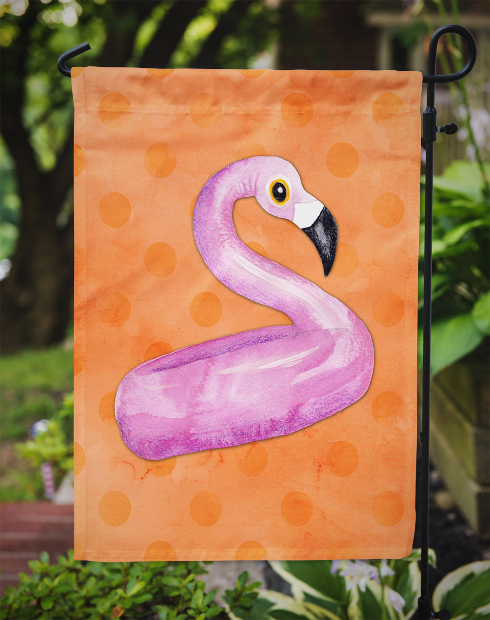 Flamingo Floaty Orange Polkadot Garden Flag - Outdoor Decorative Yard Flag BB8258GF