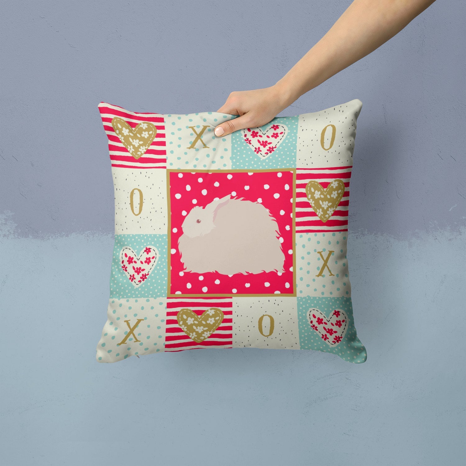 Decorate your space with our Valentine's Day Fluffy Angora Rabbit artwork on a Pillow. Add a touch of vibrancy and comfort to your outdoor seating with Caroline's Treasures Fabric Decorative Pillow. Measuring approximately 14 inches by 14 inches, this outdoor pillow is crafted to elevate the appeal of your patio furniture, infusing it with vivid color and artistic flair. The pillow includes a 100% Polyester Fabric sham filled with a quality pillow form to provide superior comfort. Innovatively made from our brand new material, specifically woven for its water resistance, this pillow is designed for durability. The soft canvas fabric offers versatility in use, fit for your indoor couch or your outdoor patio, porch, or veranda. The fabric is dyed with colorfast dyes built for resilience against weather conditions, ensuring the pillow retains its beauty over time. Constructed by sewing three fabric pieces to create a sham, the polyester insert is then nestled inside to form the pillow, resulting in an overstuffed pillow that maintains its shape. Both the sham and the pillow insert are proudly made in the United States. As the pillows are handcrafted, there may be minor variations in size, further enhancing their unique charm. Experience comfort in style with Caroline's Treasures Fabric Decorative Pillow.