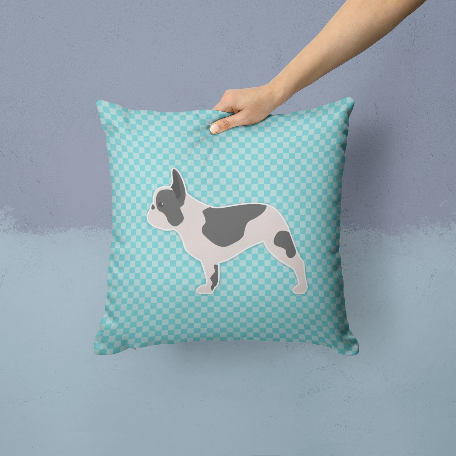 French Bulldog Checkerboard Blue Throw Pillow - 14x14 Decorative Pillow – Art for Your Home & Patio BB3741PW1414