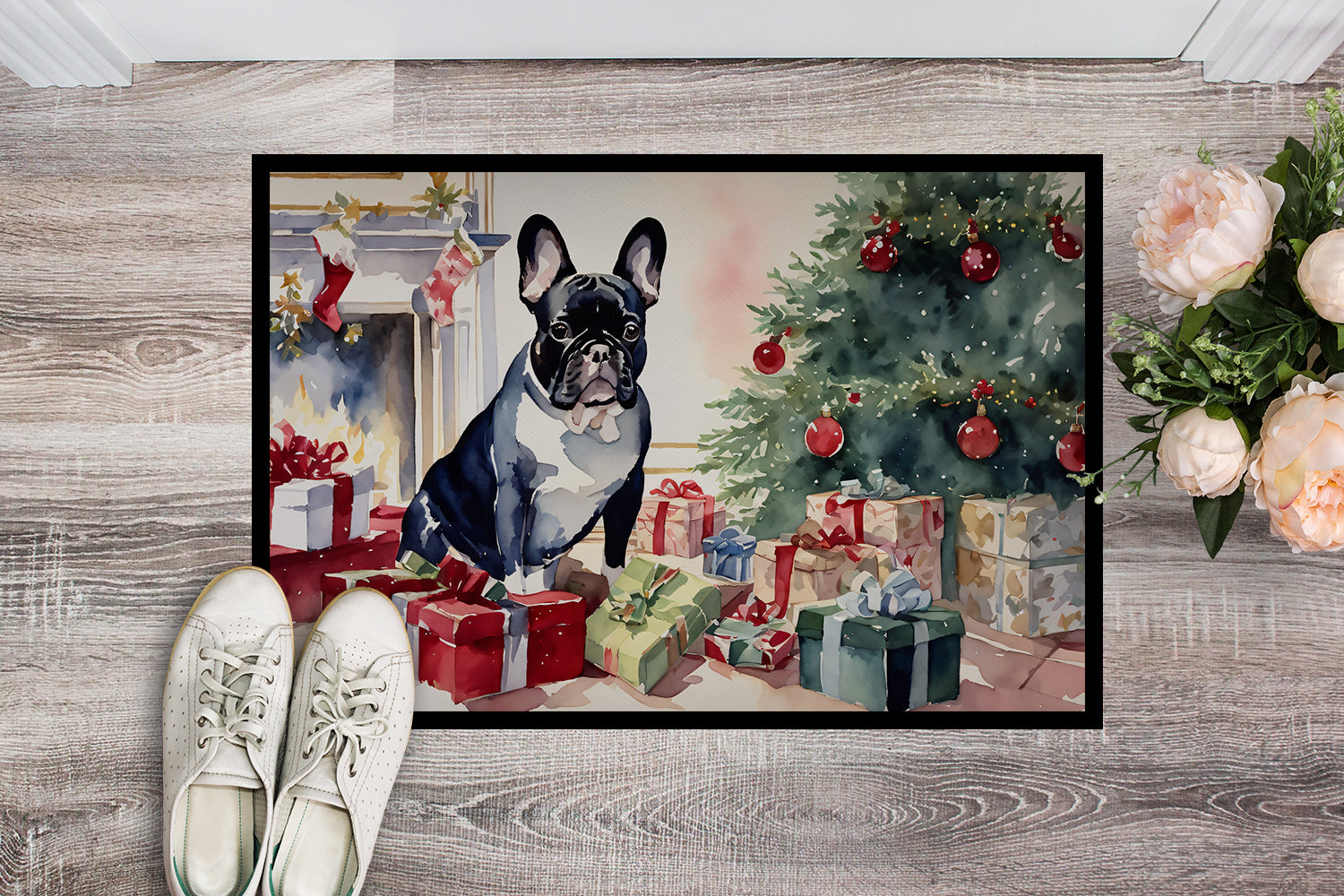 Decorate your space with our Christmas French Bulldog artwork on a Doormat. Welcome your guests in style with our Artwork Door Mat, designed to withstand almost any weather condition. This mat, measuring approximately 24 by 36 inches, is held together by durable black binding tape. Its top layer, composed of polyester felt, is dyed with the eye-catching image you see on the mat. A few layers below provide the mat with stability, while its rubber bottom is stamped to help prevent slipping and ensures safety. Our mat works wonderfully as both an indoor or outdoor door mat. For cleaning, simply hose it off with water or use a power washer - no need for any cleaner that produces suds. Avoid scrubbing with a brush, instead, opt for the vacuum on floor setting. Designed manufactured and printed in the USA, this mat is a perfect addition to your porch, outdoor kitchen, entryway, or any indoor space. Its unique design makes it a charming decorative rug that greets your guests and adds a stylish touch to your home decor.