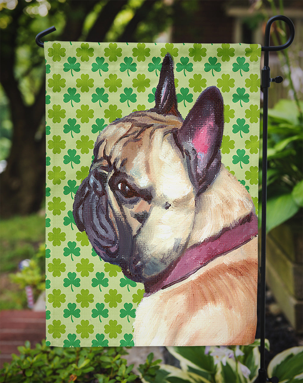 Decorate your space with our St Patrick's Day French Bulldog artwork on a Garden Flag. Enhance the beauty of your garden, patio, or yard with Caroline's Treasures Decorative Garden Flag, proudly made in the USA. Crafted from two pieces of thick, double-sided polyester fabric, this 2-ply garden flag is designed to withstand various weather conditions, making it water-resistant and weatherproof. Featuring correctly readable words on both sides, this garden flag offers a delightful visual experience from any angle. With its heavier weight, it stands out among other garden flags, ensuring stability and durability even in wind, rain, and snow. Measuring approximately 11 1/4 inches by 15 1/2 inches, this flag allows you to personalize your outdoor decor. It comes with a 1 1/2-inch sleeve sewn in, allowing easy attachment to any standard garden flag stand or garden size porch hanger (sold separately). Make a statement in your outdoor space with Caroline's Treasures Decorative Garden Flag, a vibrant and high-quality flag that adds color and personality to your surroundings. Proudly made in the USA, it's a symbol of quality craftsmanship and attention to detail.