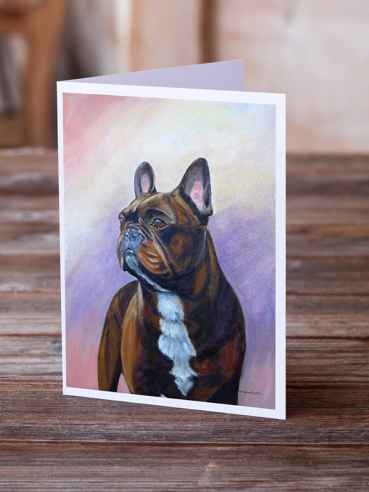 Decorate your space with our French Bulldog artwork on a . Celebrate special moments with Caroline's Treasures Printed Greeting Card Pack. This pack includes eight beautifully folded 5x7 cards, accompanied by eight matching white envelopes. With blank interiors, these cards provide ample space for your personalized messages and heartfelt holiday greetings. Each card features captivating full-color artwork, meticulously printed in our facility on high-quality 80 lb cover stock or 216 GSM. The super smooth finish of the white cards enhances the visual impact of the artwork, creating a truly stunning presentation. Designed by our talented in-house artists or licensed artists, the artwork on these cards showcases their creativity and attention to detail. From vibrant illustrations to captivating designs, each card tells its own unique story. Whether it's for birthdays, anniversaries, holidays, or any special occasion, Caroline's Treasures Greeting Card Pack is the perfect way to convey your heartfelt sentiments. Share joy, love, and warm wishes with these exquisite cards and make every moment unforgettable.