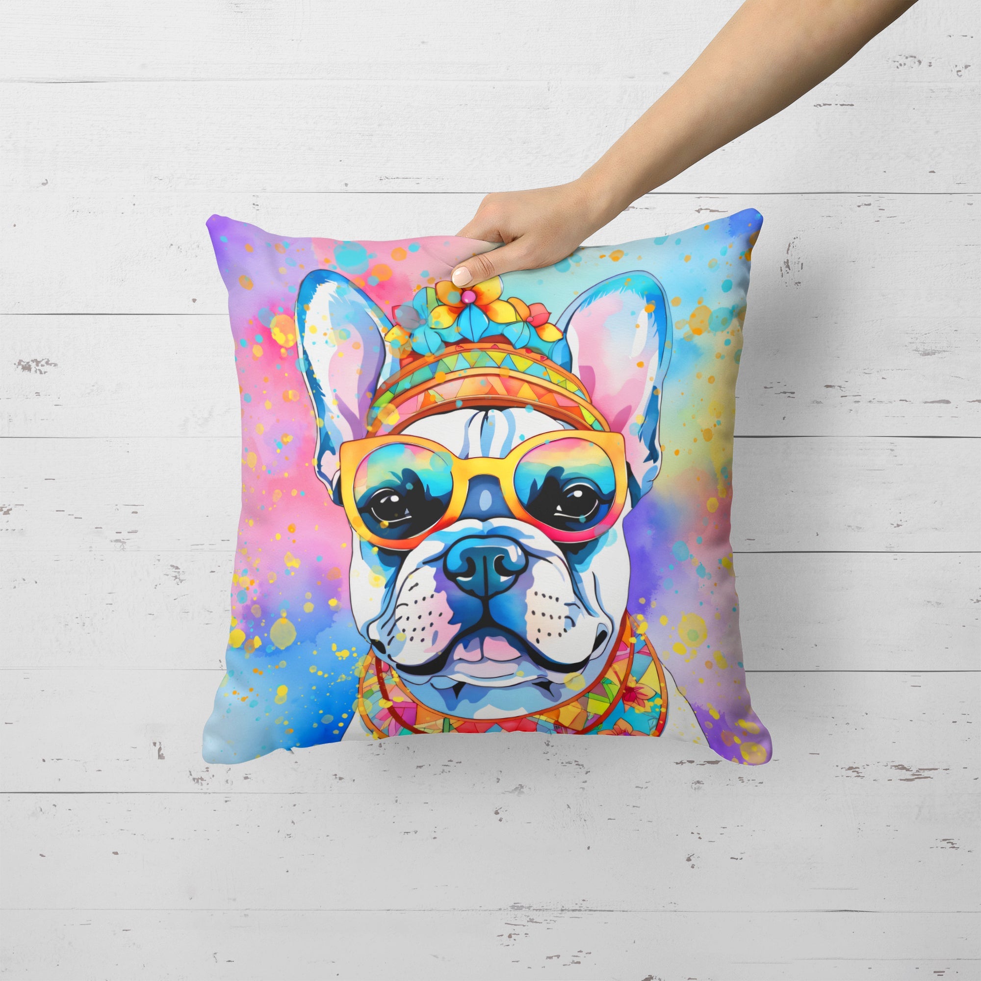 Decorate your space with our French Bulldog artwork on a Pillow. Bring a bit of Summer into your home with a Summer Pillow. Revitalize your outdoor or indoor living space with Caroline's Treasures 18x18 Fabric Decorative Pillow. With a generously sized dimension of approximately 18 inches by 18 inches, this pillow makes a comfortable and aesthetic addition to any seating area. Made from a unique, water-resistant material developed by Caroline's Treasures, the pillow sham is 100% polyester fabric that's durable and ready to weather any condition. Its vibrant, full-color artwork will not fade over time as it is dyed with color-fast dyes. Whether you place it on your patio furniture, porch, veranda, or indoor couch, its soft canvas fabric ensures a cozy experience. The pillow is handcrafted in the United States, featuring a sham created from three pieces of fabric and a polyester insert for enduring shape and overstuffed comfort. Despite being robustly built to endure the outdoors, it is as soft and snug as your favorite indoor cushions. Please note, as all our pillows are handmade, sizes may vary slightly, adding to the charm of this unique decorative item.