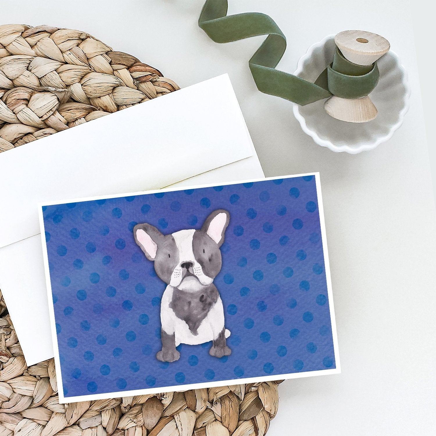 Decorate your space with our French Bulldog artwork on a . Celebrate special moments with Caroline's Treasures Printed Greeting Card Pack. This pack includes eight beautifully folded 5x7 cards, accompanied by eight matching white envelopes. With blank interiors, these cards provide ample space for your personalized messages and heartfelt holiday greetings. Each card features captivating full-color artwork, meticulously printed in our facility on high-quality 80 lb cover stock or 216 GSM. The super smooth finish of the white cards enhances the visual impact of the artwork, creating a truly stunning presentation. Designed by our talented in-house artists or licensed artists, the artwork on these cards showcases their creativity and attention to detail. From vibrant illustrations to captivating designs, each card tells its own unique story. Whether it's for birthdays, anniversaries, holidays, or any special occasion, Caroline's Treasures Greeting Card Pack is the perfect way to convey your heartfelt sentiments. Share joy, love, and warm wishes with these exquisite cards and make every moment unforgettable.