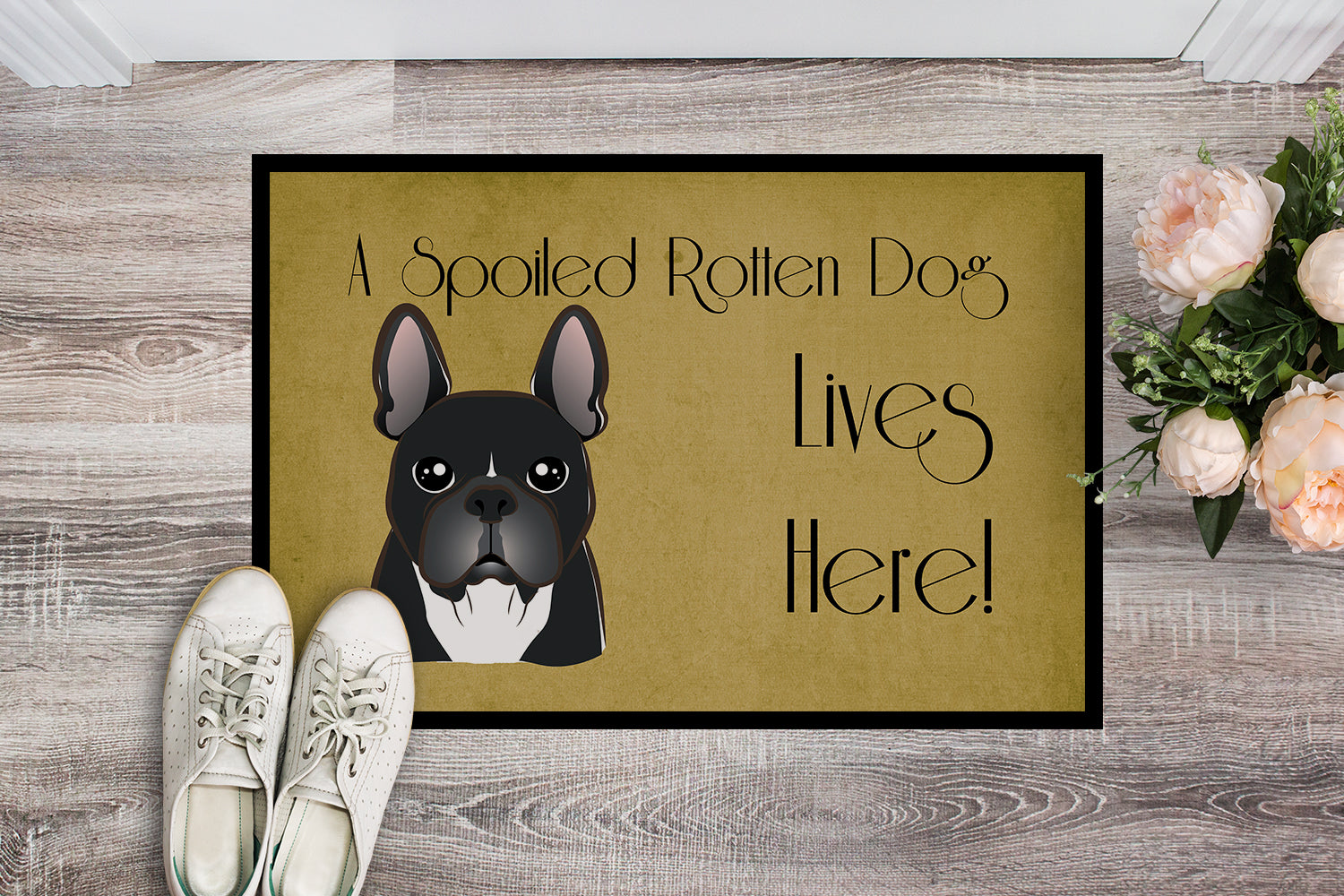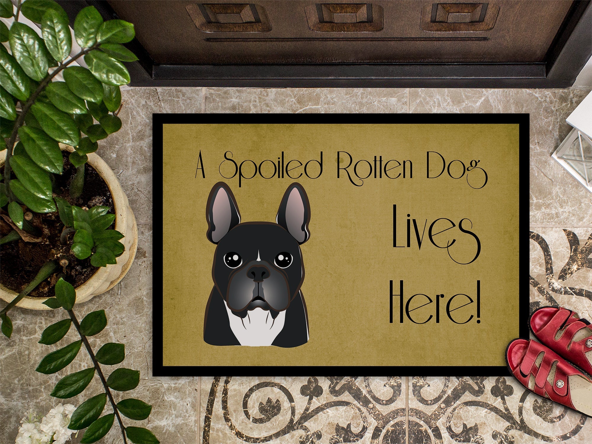 Decorate your space with our French Bulldog artwork on a Doormat. Welcome your guests in style with our Artwork Door Mat, designed to withstand almost any weather condition. This mat, measuring approximately 24 by 36 inches, is held together by durable black binding tape. Its top layer, composed of polyester felt, is dyed with the eye-catching image you see on the mat. A few layers below provide the mat with stability, while its rubber bottom is stamped to help prevent slipping and ensures safety. Our mat works wonderfully as both an indoor or outdoor door mat. For cleaning, simply hose it off with water or use a power washer - no need for any cleaner that produces suds. Avoid scrubbing with a brush, instead, opt for the vacuum on floor setting. Designed manufactured and printed in the USA, this mat is a perfect addition to your porch, outdoor kitchen, entryway, or any indoor space. Its unique design makes it a charming decorative rug that greets your guests and adds a stylish touch to your home decor.
