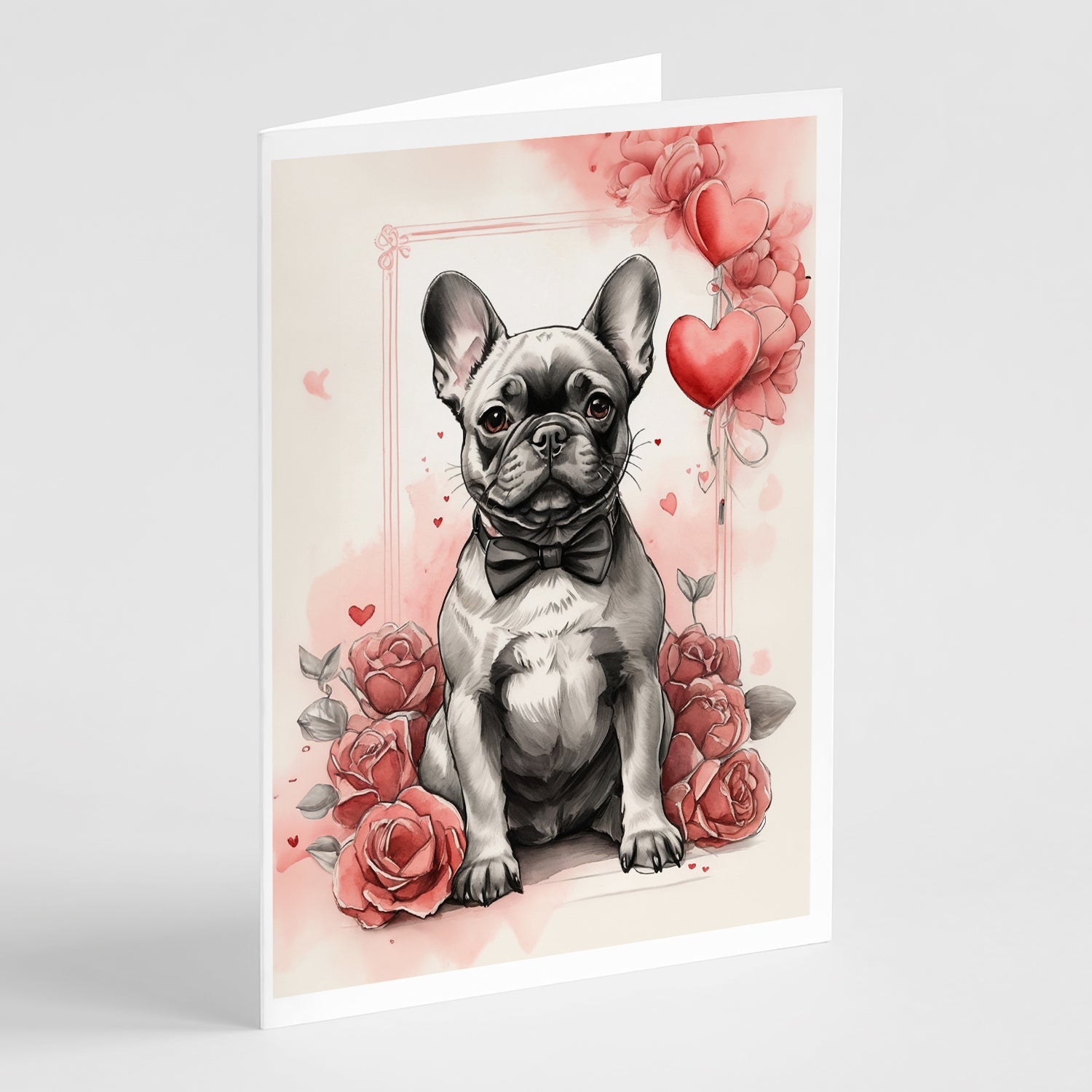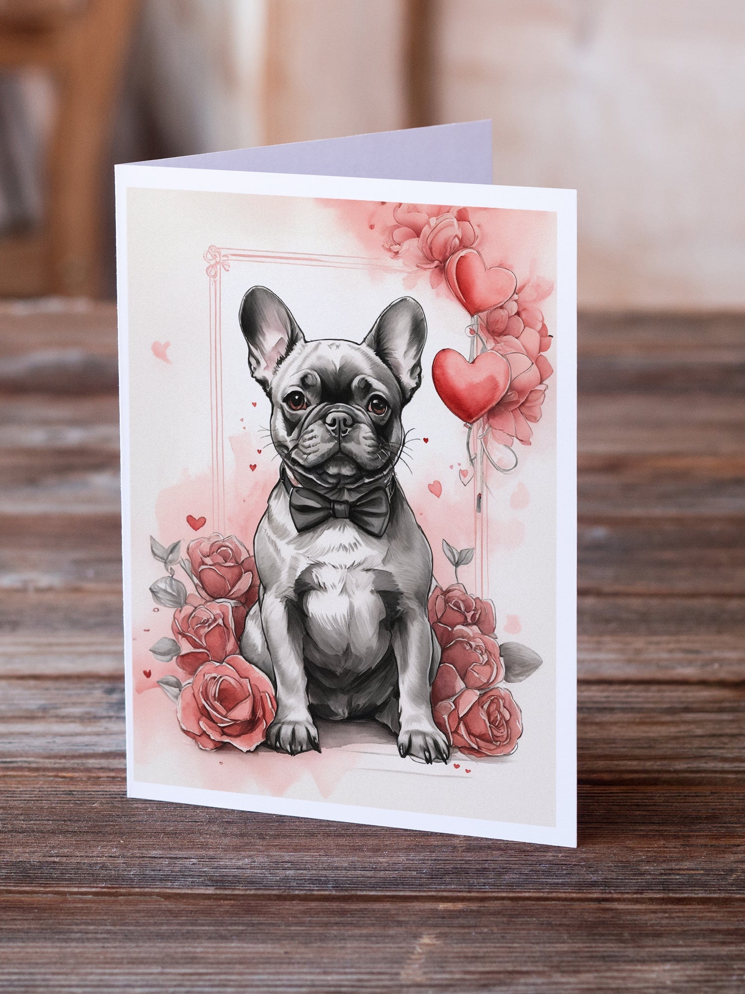 French Bulldog Valentine Roses Greeting Cards - Blank Note Cards – 8-Pack of Artist-Designed Cards with Envelopes